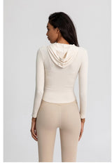Autumn Seamless Solid Yoga Hoodies Long Shirt Jacket Long Sleeve Zipper Sportswear Hooded Top Gym Fitness Workout Sports Tees