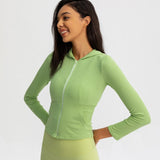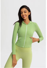 Autumn Seamless Solid Yoga Hoodies Long Shirt Jacket Long Sleeve Zipper Sportswear Hooded Top Gym Fitness Workout Sports Tees-UHXC-green-XL-United States-Urbanheer