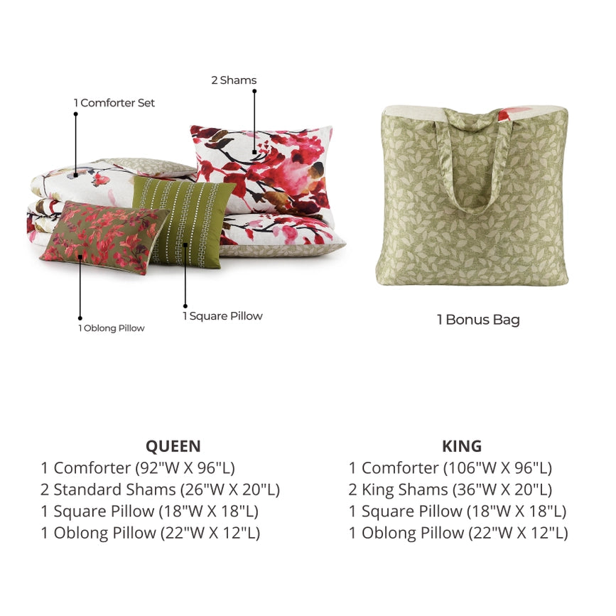 Bebejan Leaves On Linen 5 Piece Reversible Comforter Set-Set-Bebejan-Queen-Urbanheer