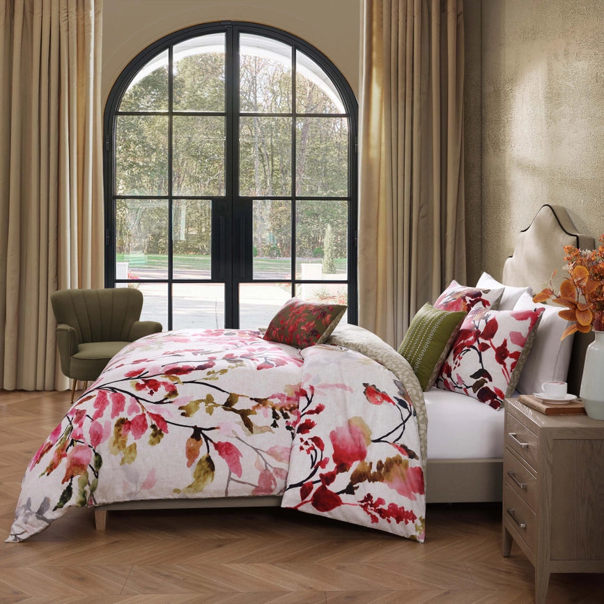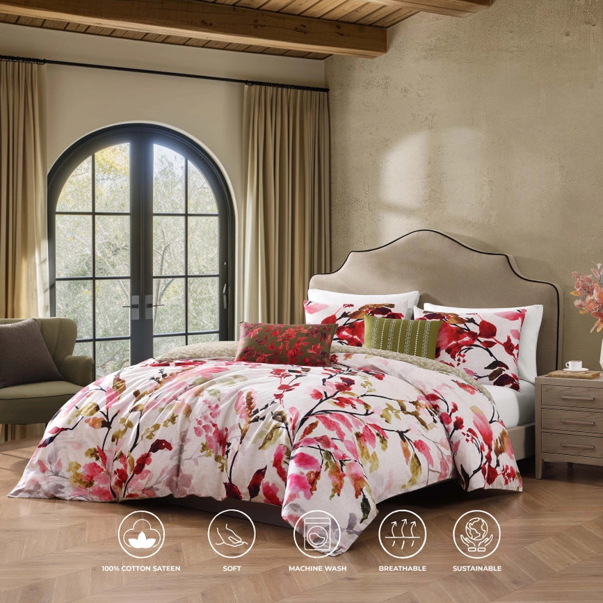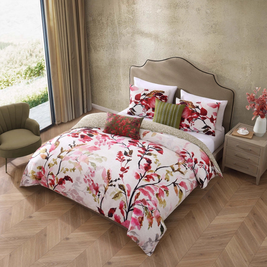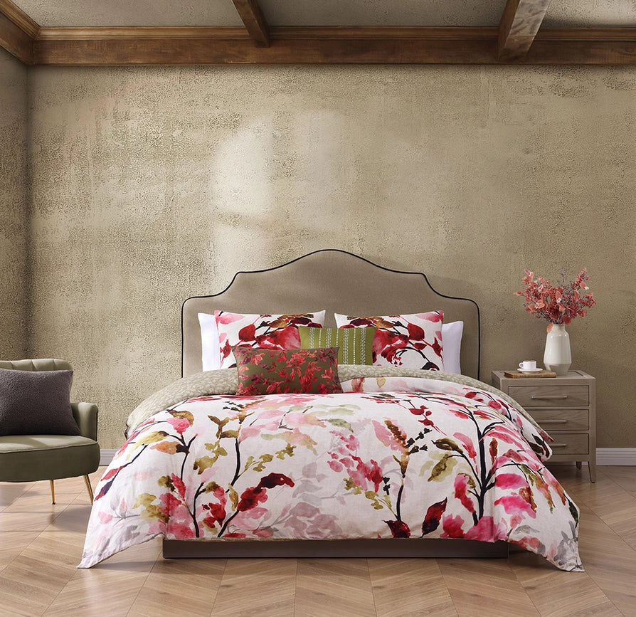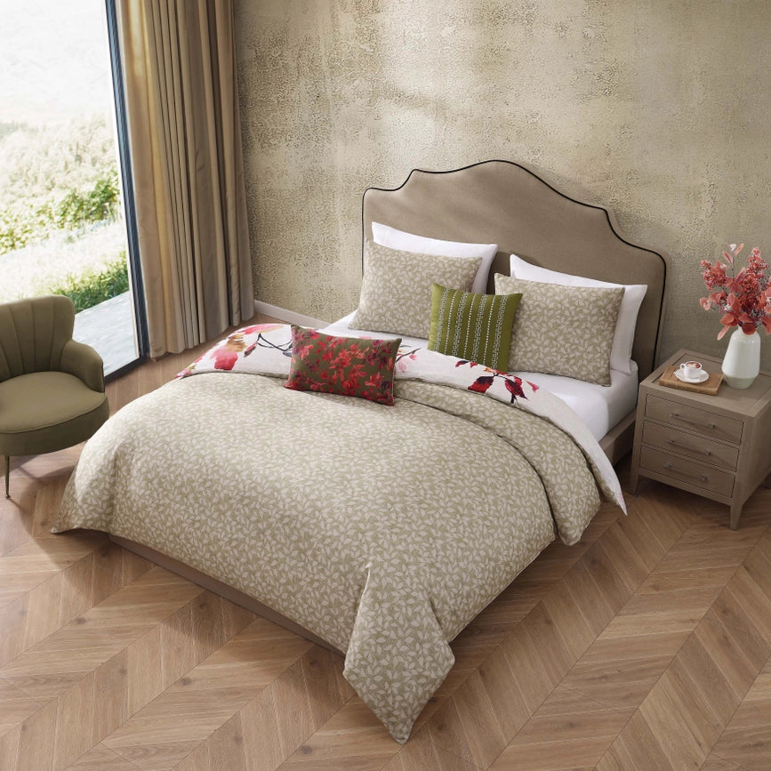 Bebejan Leaves On Linen 5 Piece Reversible Comforter Set