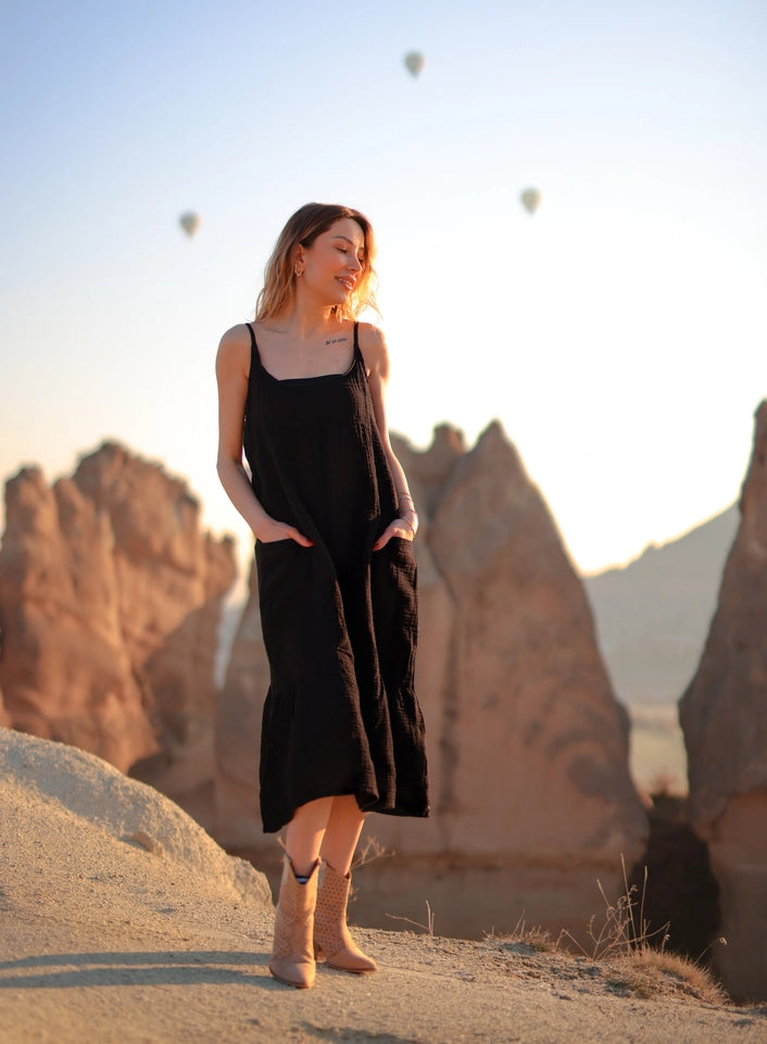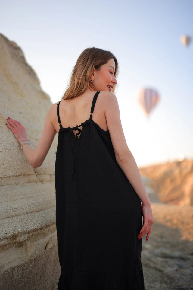 Expertly crafted in Turkey from 100% double-layered muslin cotton, this Beige Double Gauze Strap Dress combines exceptional comfort with refined design. The premium fabric creates a pillowy, luxurious texture against the skin while maintaining structural integrity. Its thoughtfully engineered high-low hemline provides elegant draping and enhanced movement. The double-layer construction ensures complete opacity without compromising breathability, making it an ideal investment piece for elevated summer styling—from sophisticated home entertaining to resort wear. The natural cotton fibers deliver superior temperature regulation for sustained comfort in warm climates.