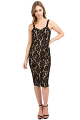 Bianca Dress - Bodycon bustier lace midi dress with piping detail