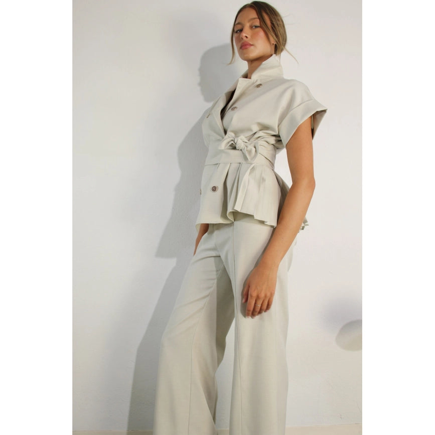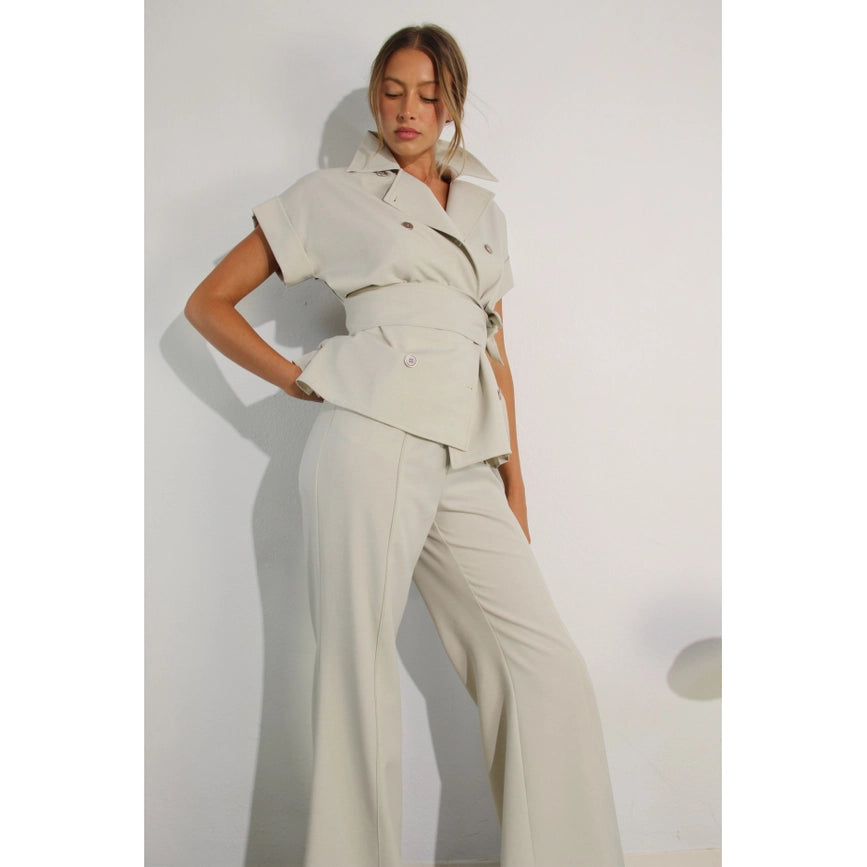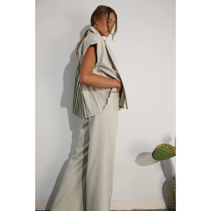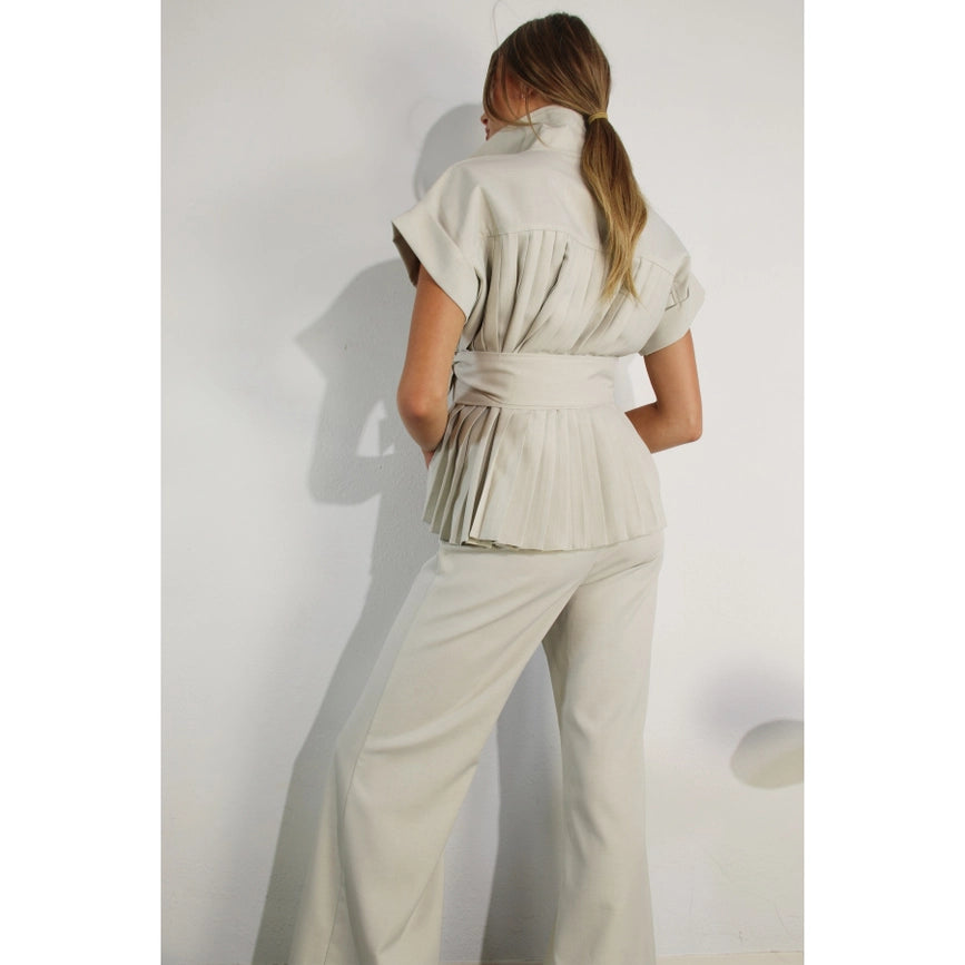 Expertly tailored for a sophisticated look, this Black Pleated Jacket and Pants Set is made from high-quality polyester and spandex blend. The double button collared jacket top adds a touch of elegance, while the belted pin out pants provide a flattering fit. Perfect for any formal occasion.