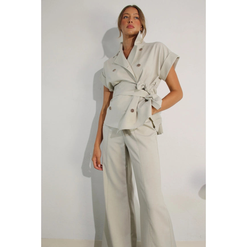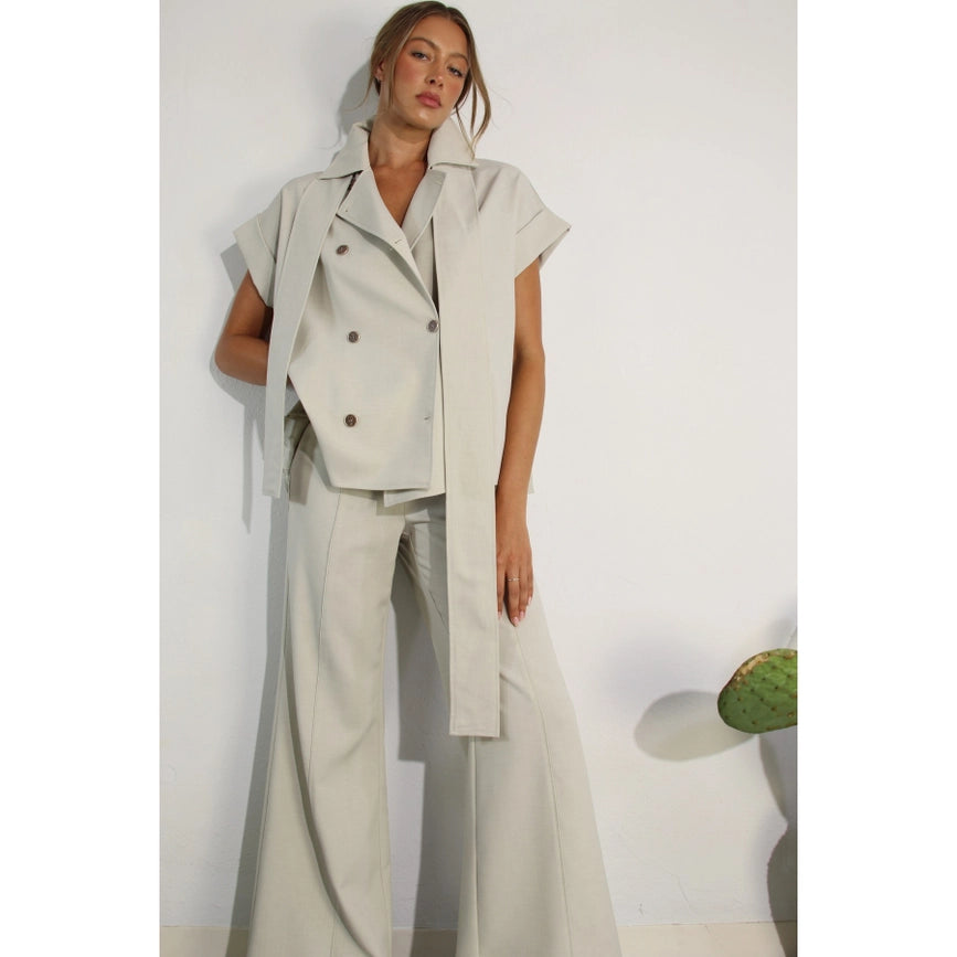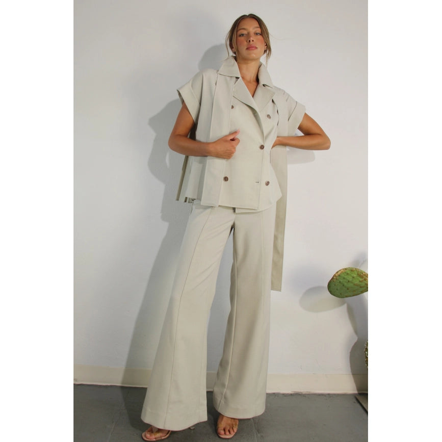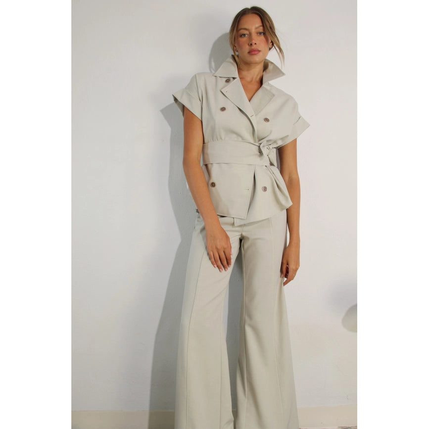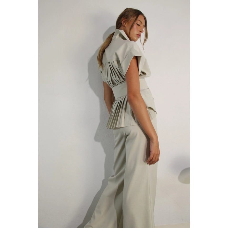 Expertly tailored for a sophisticated look, this Black Pleated Jacket and Pants Set is made from high-quality polyester and spandex blend. The double button collared jacket top adds a touch of elegance, while the belted pin out pants provide a flattering fit. Perfect for any formal occasion.