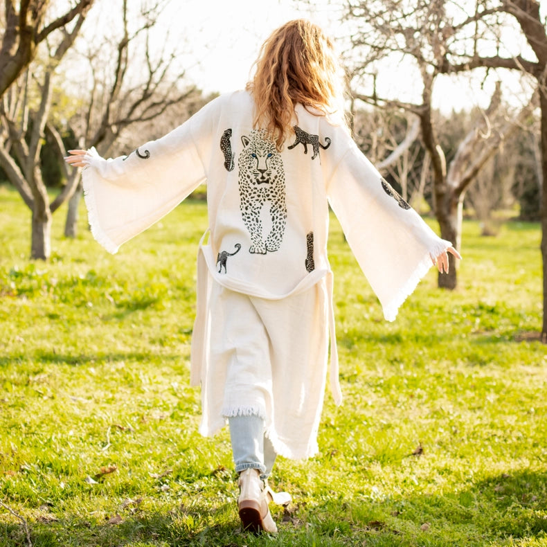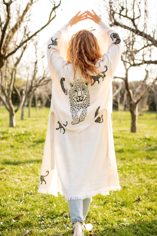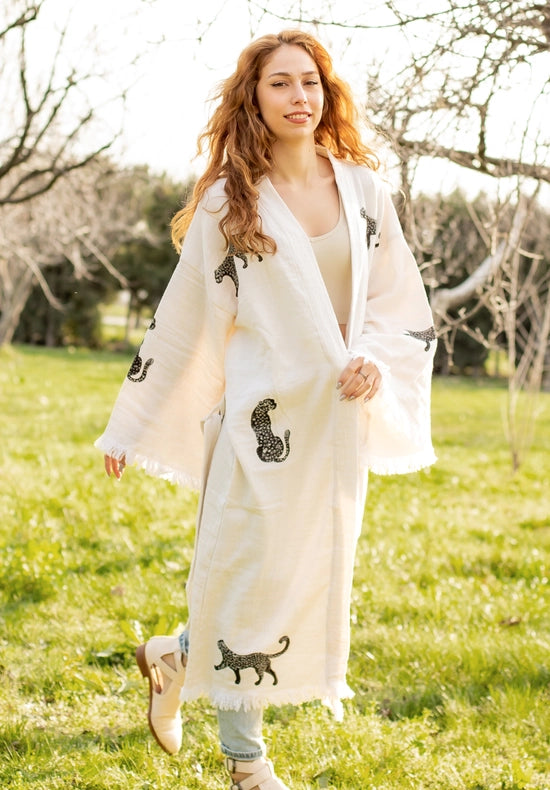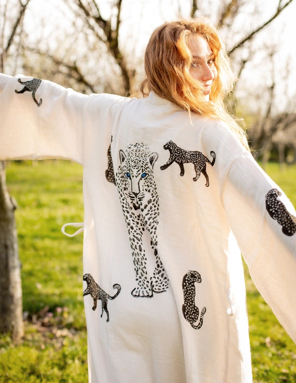 Boho Tiger Long Kaftan Kimono White Kimono Black Tiger