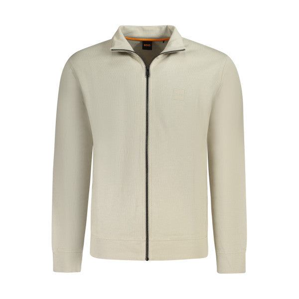 This long-sleeve sweatshirt features a brushed finish, two pockets, a zipper, and a logo application. Made from 100% cotton, it is designed for all season and crafted in Portugal.