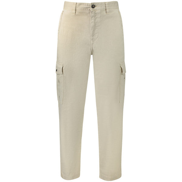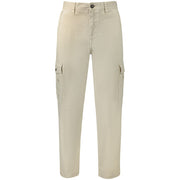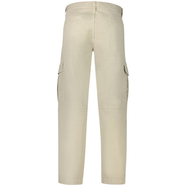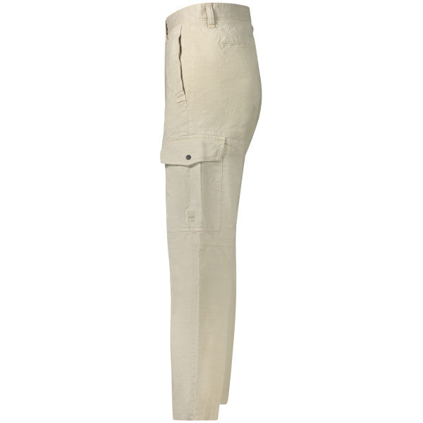 These regular fit pants feature four pockets, including two large side pockets, secured with a button and zipper. They are detailed with appliqué, embroidery, and a logo. Crafted from a blend of 98% cotton and 2% elastane, they offer both comfort and slight stretch for ease of movement.