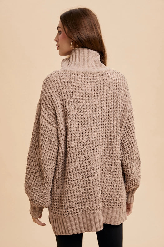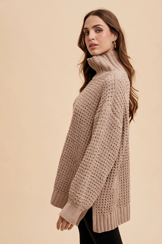 Box Weave Chunky Turtleneck Sweater Beige-Sweater-In Loom-S-Urbanheer