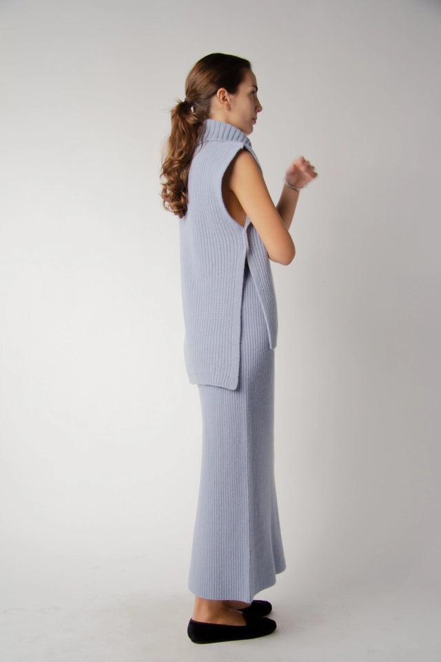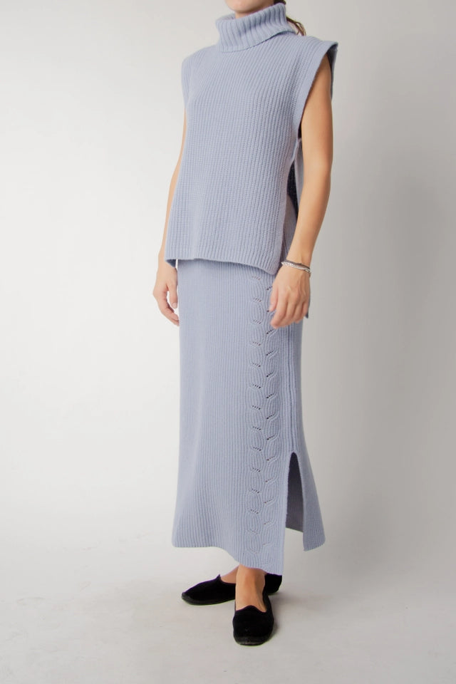 Experience the ultimate luxury with our Braided Cashmere Blend Blanket. Our expertly crafted cable design adds sophistication and texture, while our cashmere blend ensures unparalleled softness against your skin. Embrace slow fashion and timeless charm with this versatile and chic knitwear piece, featuring a regular fit, half cardigan stitch, side cables, and a side slit. Hand wash for lasting style. Made in Italy.