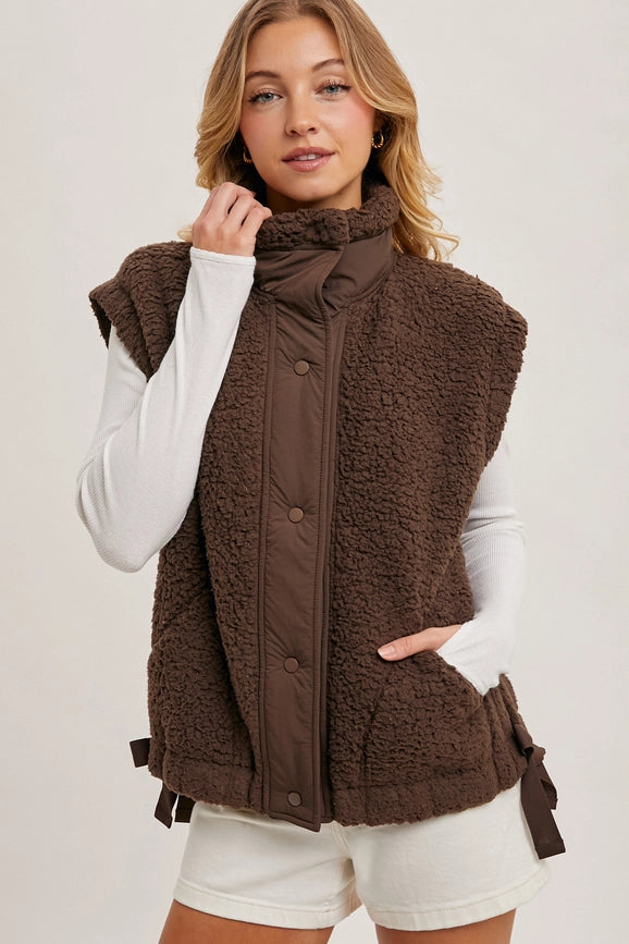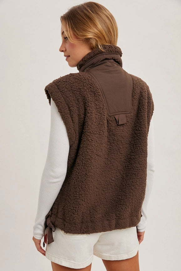 Button Down Mock Neck Fleece Sherpa Vest COCO