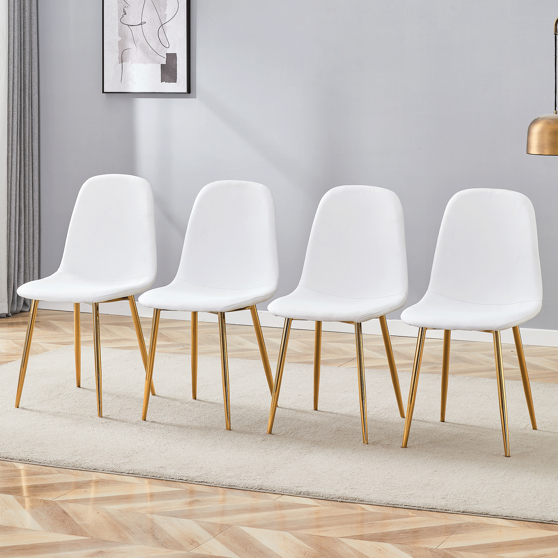 Luxury Simple Chair - Set of 4 White Linen Material High Resilience Dining Chair with Metal Golden Leg.Integral metal leg architecture,Suitable for various interior decoration styles.W1151P262610
