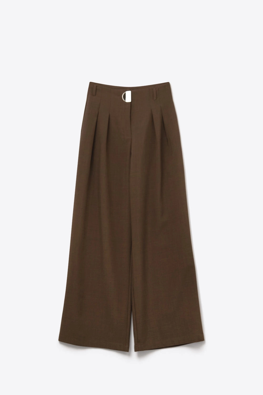 Camel Pleated Wide Pants with with Metal Buckle
