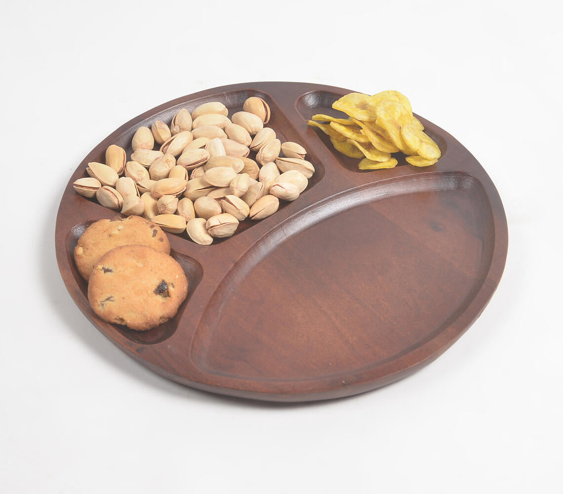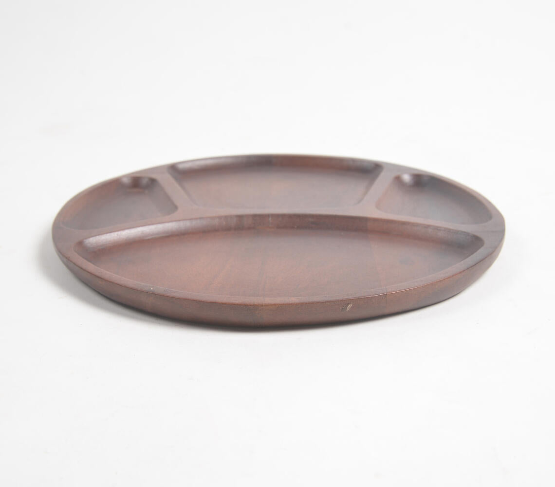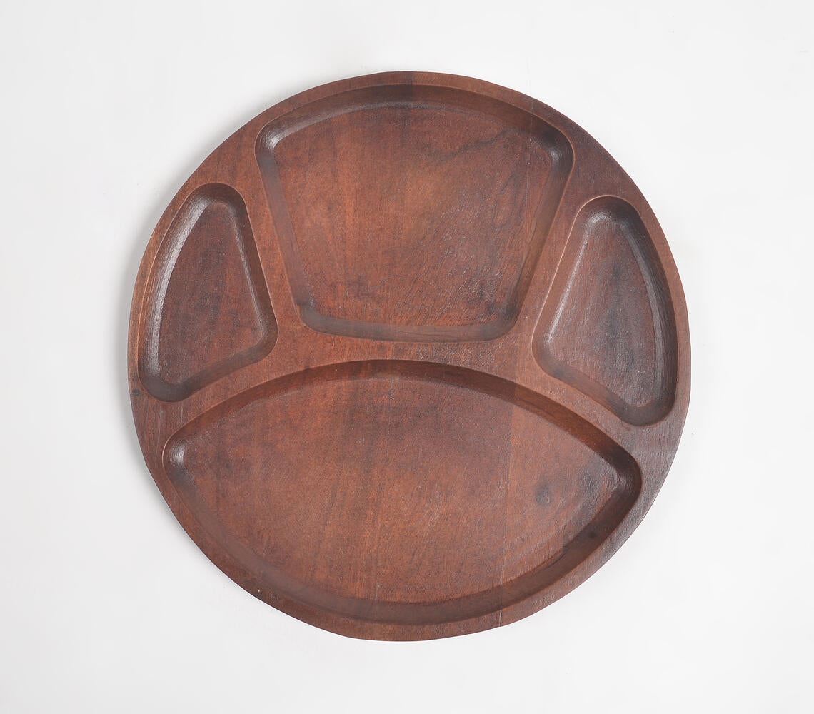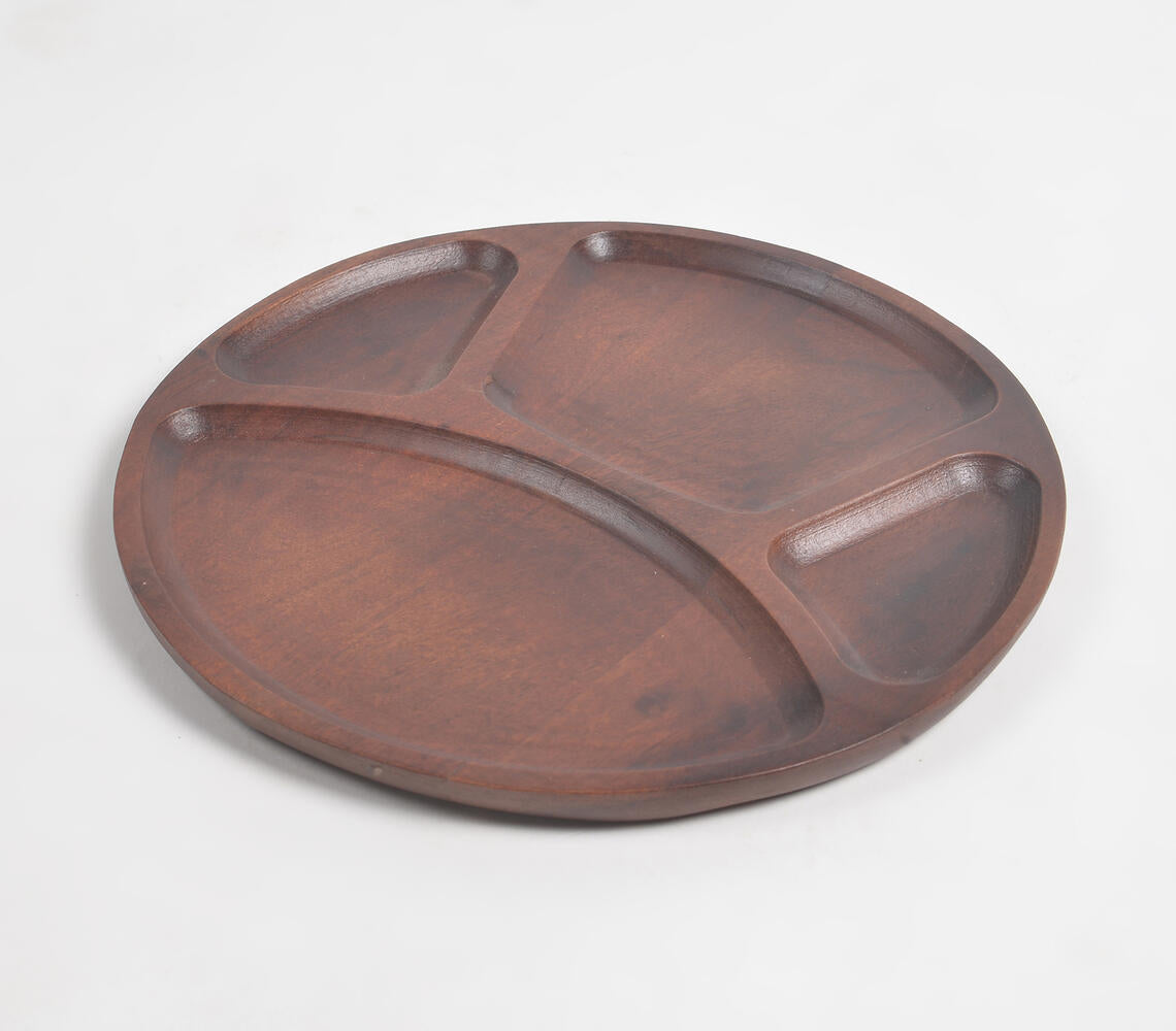 Thoughtfully designed and exquisitely crafted, Q Bazaar brings this classic serving platter with a dark burnt finish. This offering has been worked upon by North Indian artisans. Handmade woodwork as featured in this offering entails carving and cutting that employs the use of sharp tools and simple lathes to create highly functional designs and fine detailing. This distinguishing feature results in unique offerings that are hard to replicate!