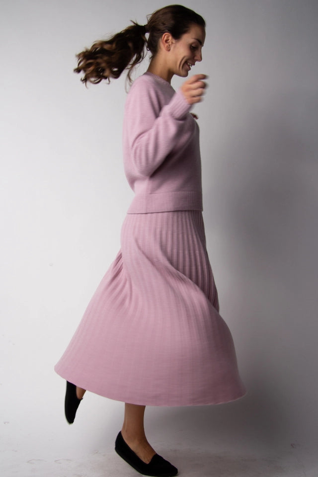 Cashmere Blend Pleated Skirt (3D Knit) Rosa