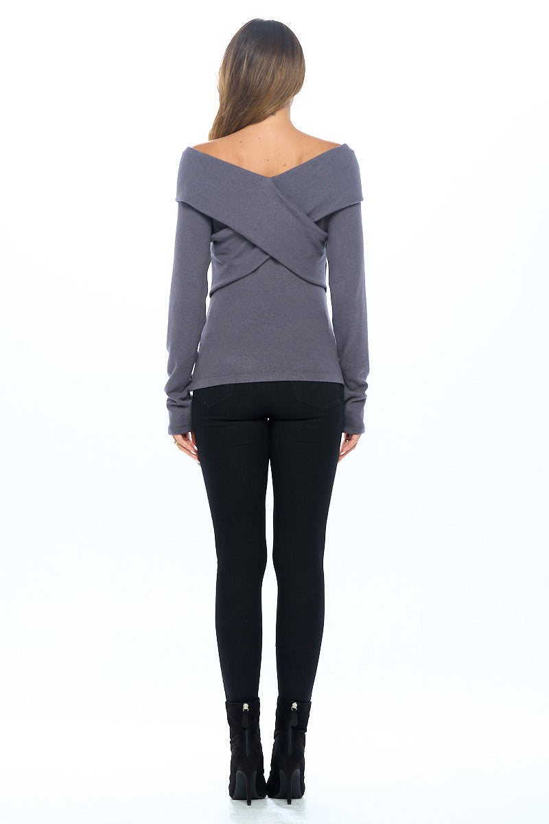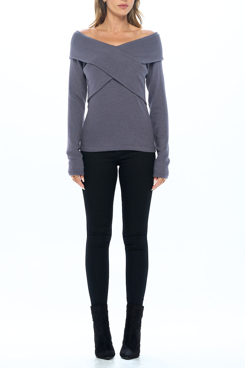 Cashmere Feel Brushed Knit Wrap Off Shoulder Top