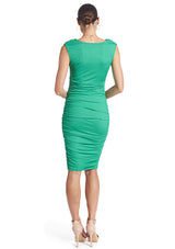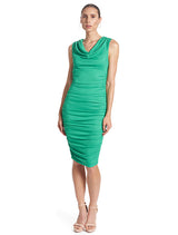 Cassini Dress - Sleeveless Cowl Neck Body-Con Ruched Midi Dress