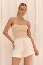 Expertly designed and tailored in Australia, the Celine Short in Bone is crafted from 100% pure linen for a comfortable and sophisticated feel. Featuring a high waist and functional side pockets, this short is both practical and stylish. With a concealed hook and zip closure, it offers a flawless fit. Cool gentle machine wash and air-dry for easy care. Made in Indonesia for quality craftsmanship.