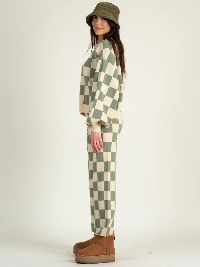 CHECKMATE Sweater and Pant Set-Sage Vanilla