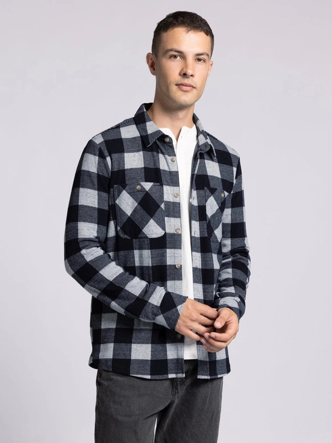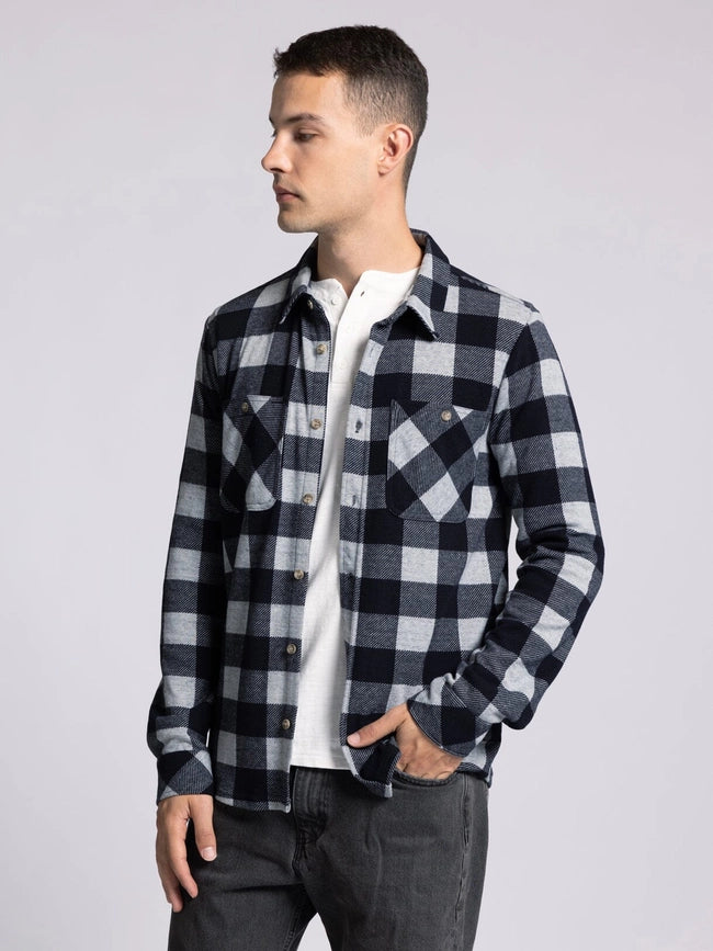Clark Shirt - Long Sleeve Button Up GREY BLACK PLAID