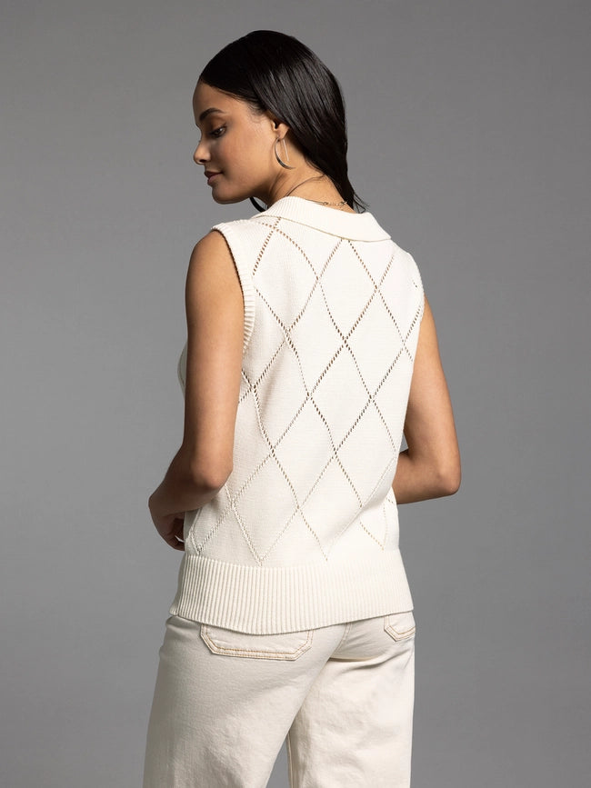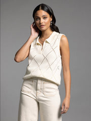 Introducing the Collared Sleeveless Knit Top - Posie Top. This versatile top features a soft, knit fabric for comfort and a trendy collared neckline for a polished look. The open placket adds a touch of sophistication. With a length of 22", chest measurement of 17.5", and sweep of 15", this top is the perfect fit for any occasion. Made from 100% cotton for optimal breathability.