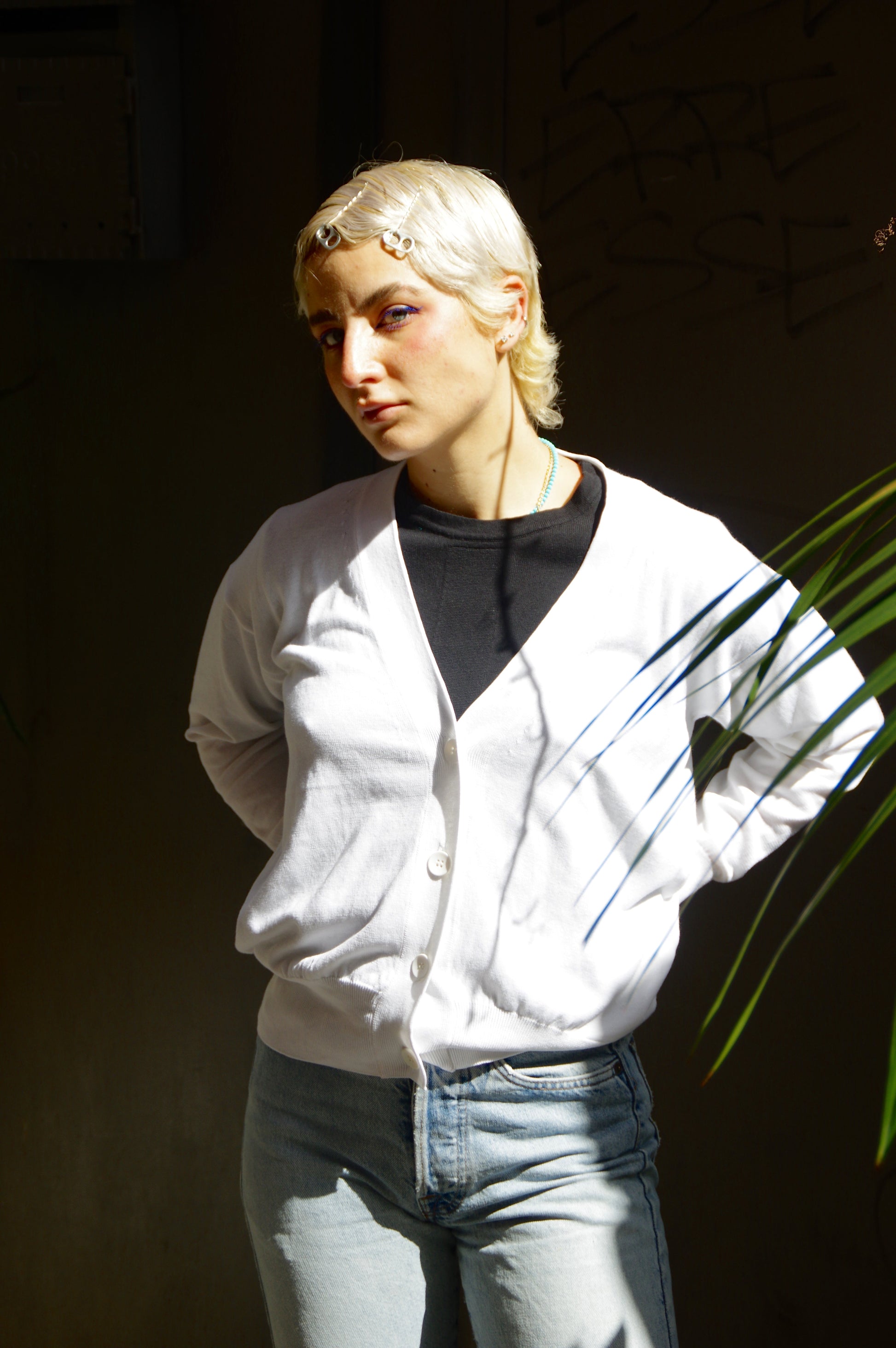 Cardigan rasato in 100% fresco cotone makò crepe, ideale per l'estate.