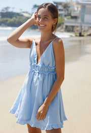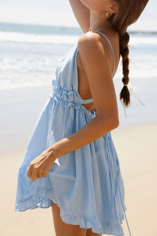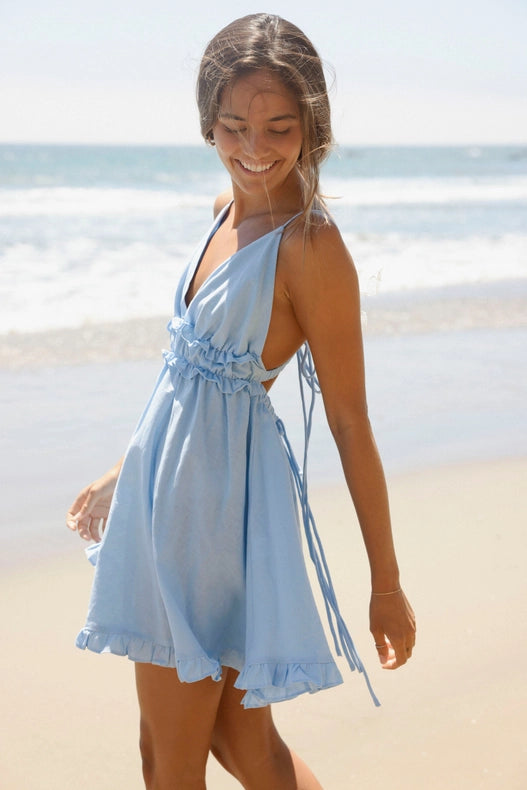 Introducing the Tahiti Dress - a flattering Spring/Summer staple. With a low back, cinched waist, and classic apron-style torso, this dress is both comfortable and stylish. The light-weight linen material and tiered ruffle detailing will keep you cool and chic. Adjustable straps ensure the perfect fit.