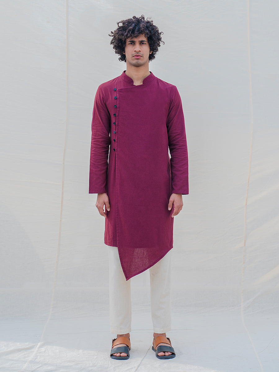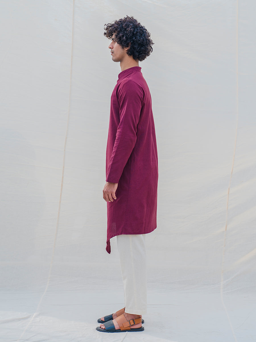 If you're looking for a comfortable Kurta set, this short, maroon Kurta is for you. It makes sure you're ready for whatever comes next.