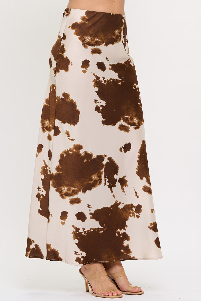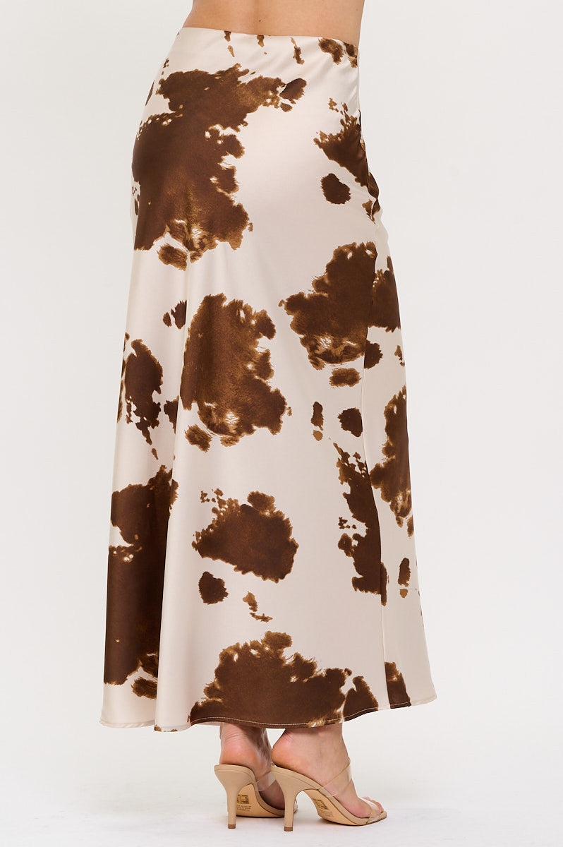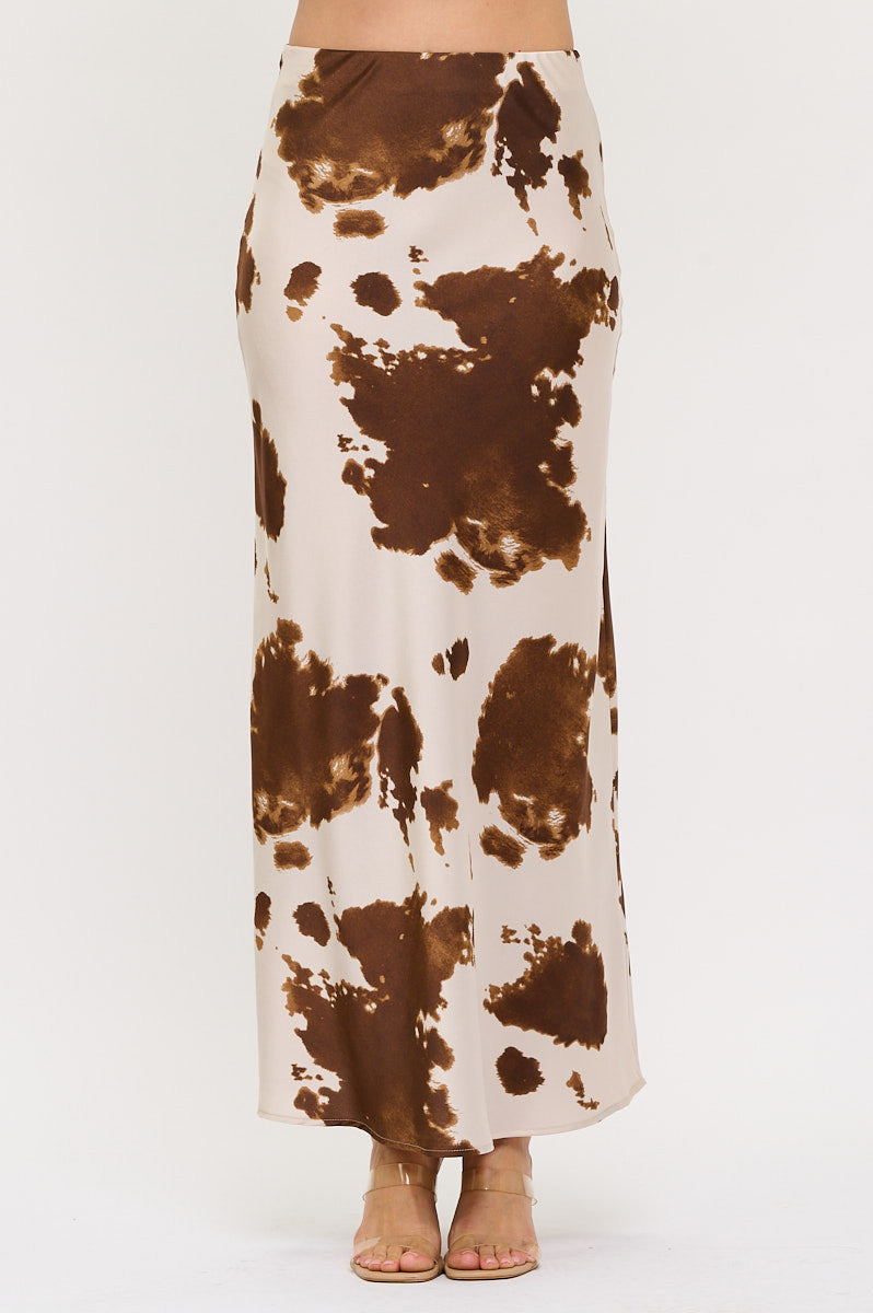 Cow Print Maxi Skirt with Elastic Waist-New Arrival-Reneecollection-Small-BROWN-Urbanheer