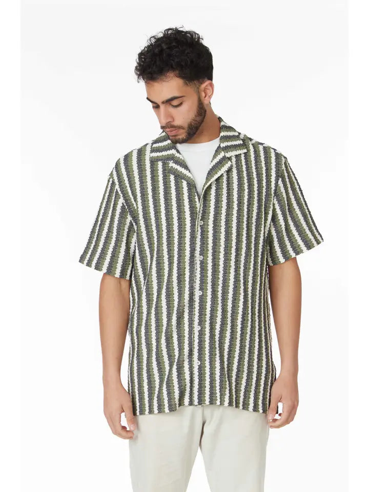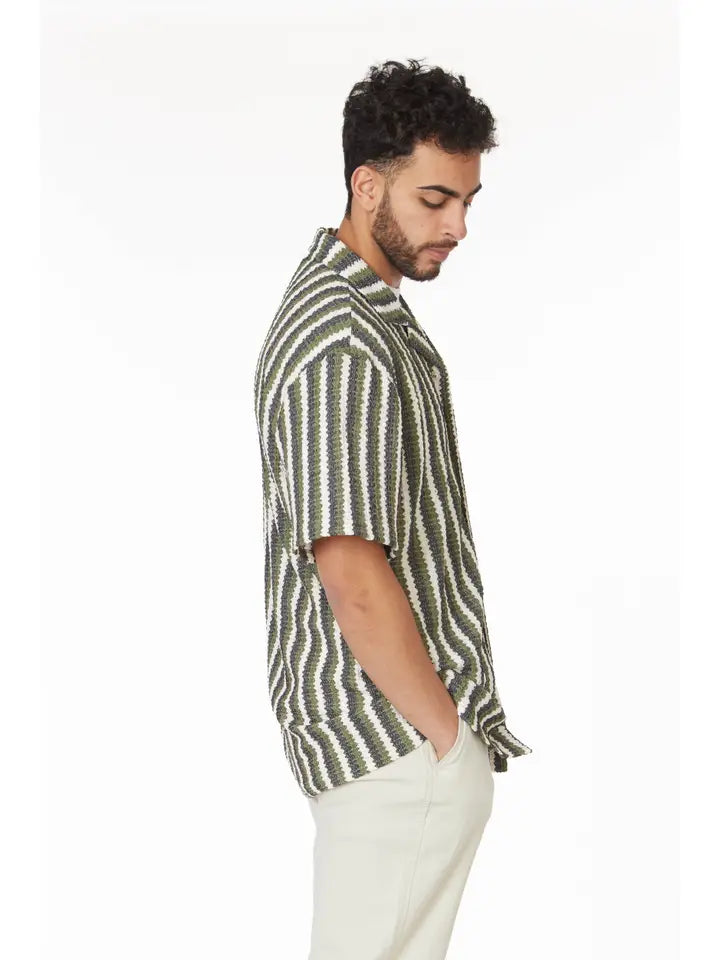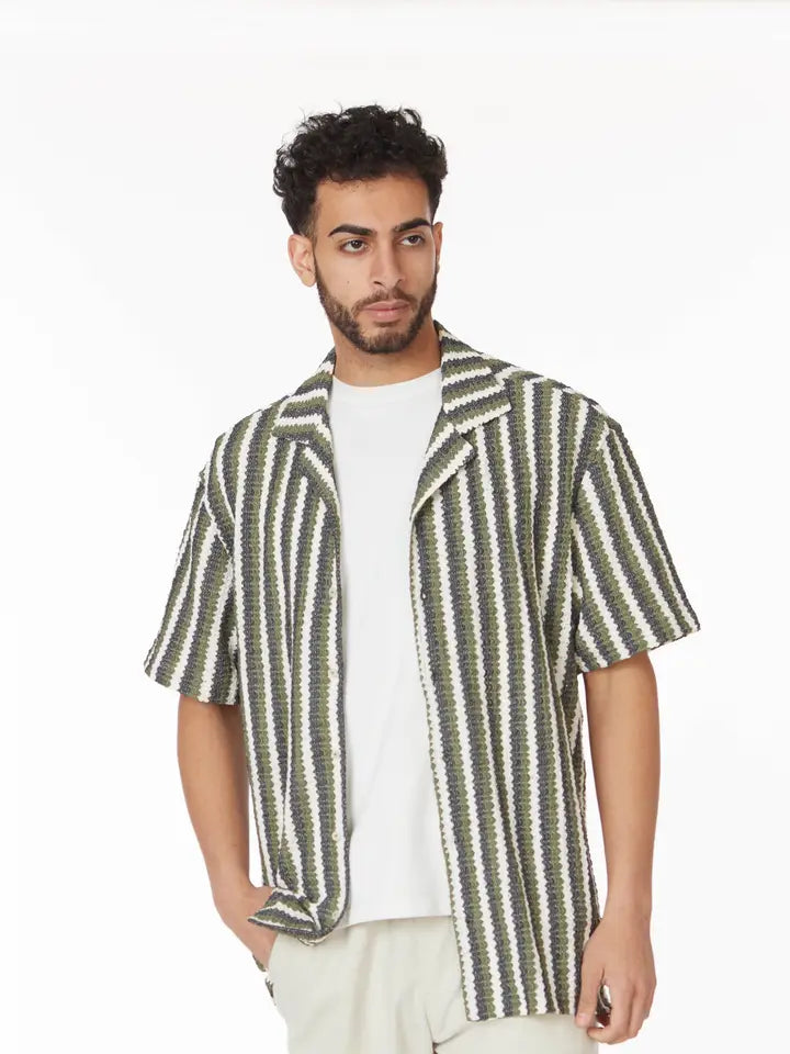 Crochet/Textured Short Sleeve Men's Shirt (HB-4055)