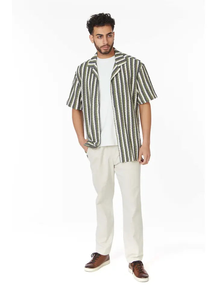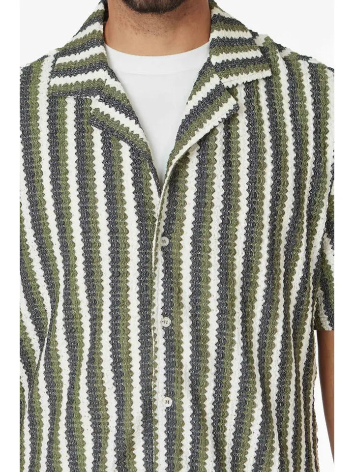 This expertly crafted crochet textured shirt combines style with comfort in a relaxed fit. Featuring a spread collar and convenient front button closure, this short-sleeve design is tailored for the modern man. The premium 55% cotton and 45% polyester blend ensures breathability while maintaining shape and reducing wrinkles throughout the day.