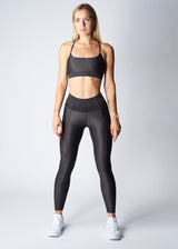 High support sports bra with a straight neckline, featuring slim cross-back straps which you can easily adjust. Combine it with ankle-biter leggings or biker shorts. Add a sustainable scrunchie to finish the look.