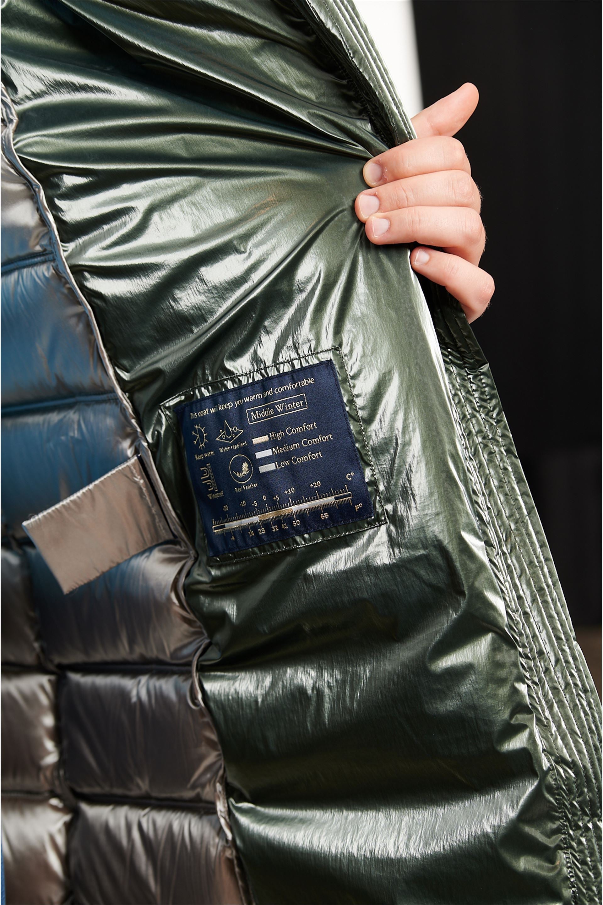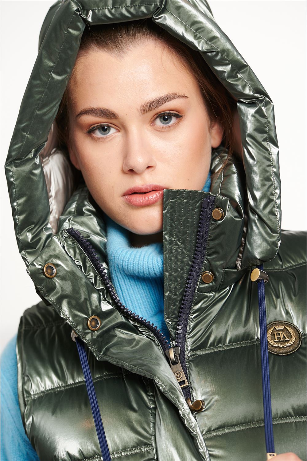 The DAKOTA WOMAN LONG VEST is a stylish and versatile choice for any woman's wardrobe. Featuring a detachable hood with a visor and cinch tie, this long vest provides both functionality and fashion. With its central closure, flap pockets, and double slider zipper, this vest is designed for convenience and practicality. Made with 90% down and 10% feather filling, it will keep you warm and comfortable. The modern striped design adds a touch of sophistication to any outfit. Length at 86 cm makes it perfect for layering.