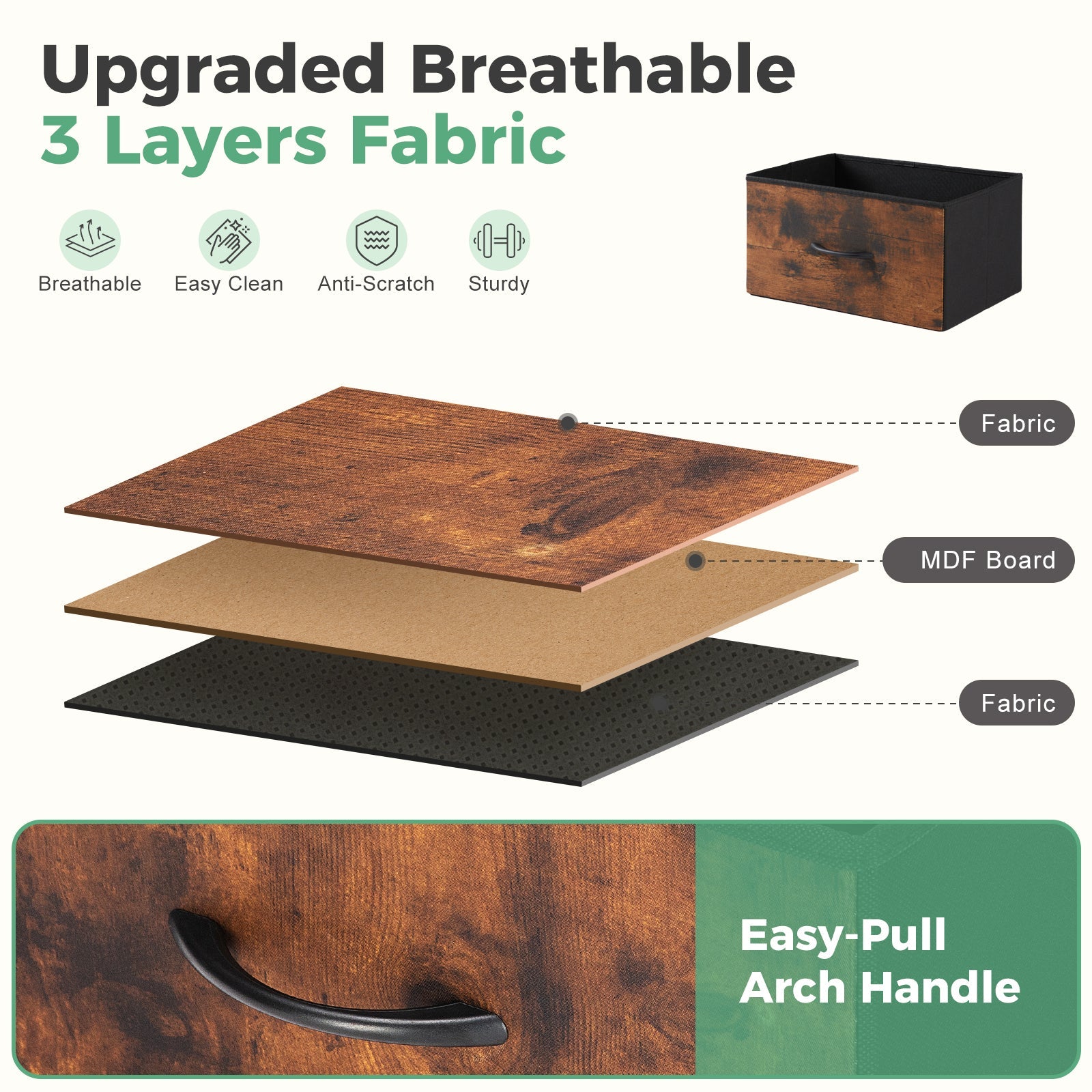 - 【High- quality Material】This fabric dressers for bedroom is made of cationic materials, all other sides and gaps are made of high-quality breathable, and non-woven synthetic fiber, harmless and wear-resistant, suitable for kids, teens, and adults. Easy-pull drawers for smooth sliding and closing. The bedroom dressers for easy cleaning, just wipe with a damp cloth and get it air-dried.