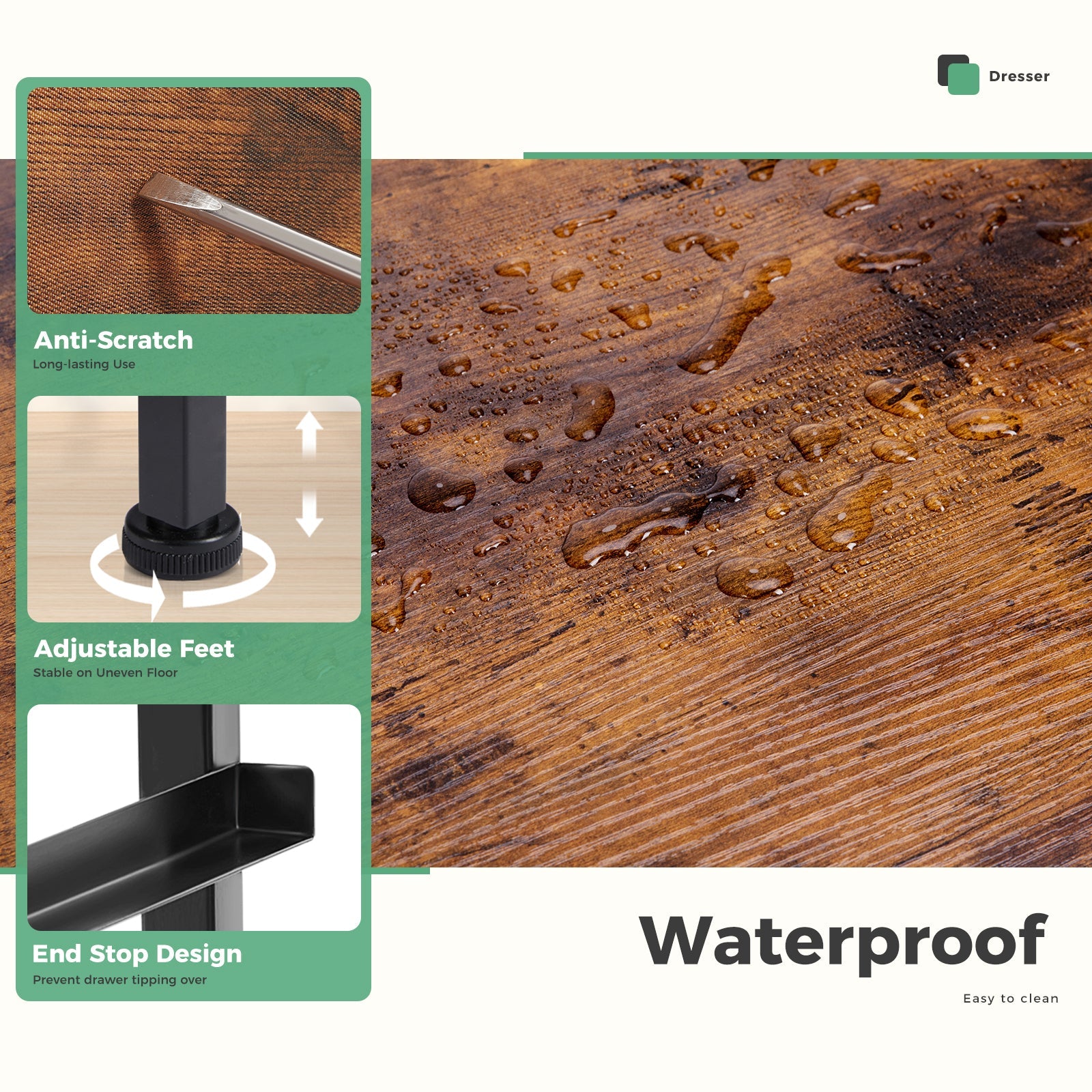 - 【Drawer Dresser with Sturdy Frame & Feet】This dresser set for bedroom is built with a sturdy metal frame to ensure stability. It is equipped with 4 adjustable feet to safeguard your floor from scratches, and you can effortlessly balance the dresser in tight spaces. Moreover, it comes with an anti-tilt device that can be utilized when mounting the bedroom dresser sets to the wall, preventing accidents caused by uneven floors or children climbing.