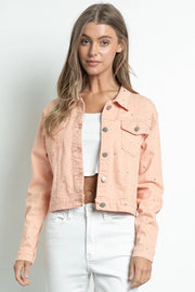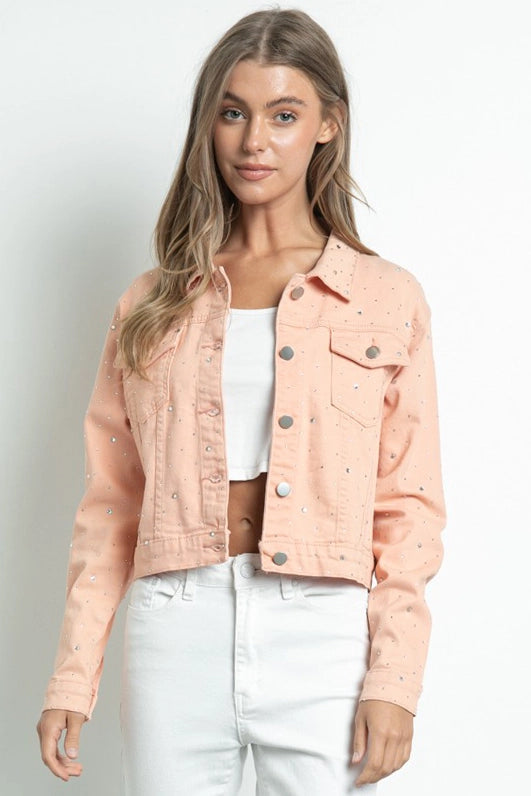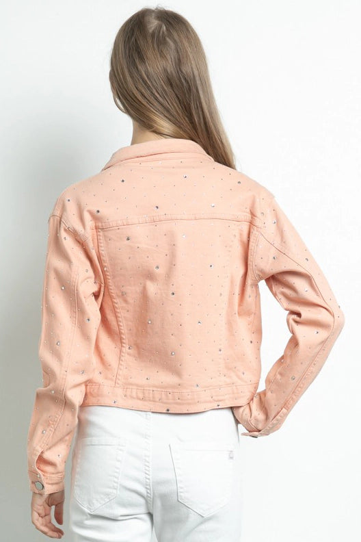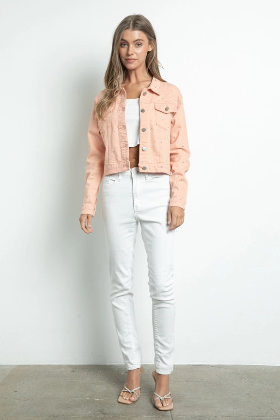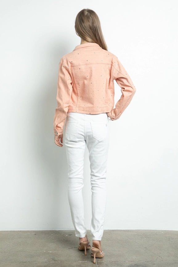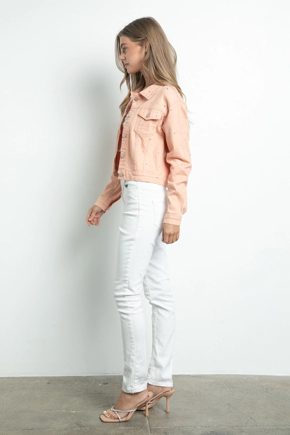 Embellished Stretch Button Down Denim Jacket
