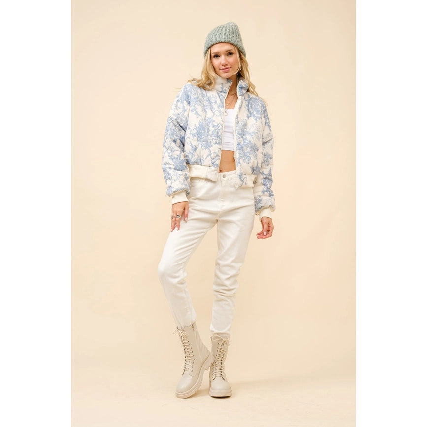 Embrace Cozy Chic with Toile Inspired Corduroy Puffer Crop Jacket