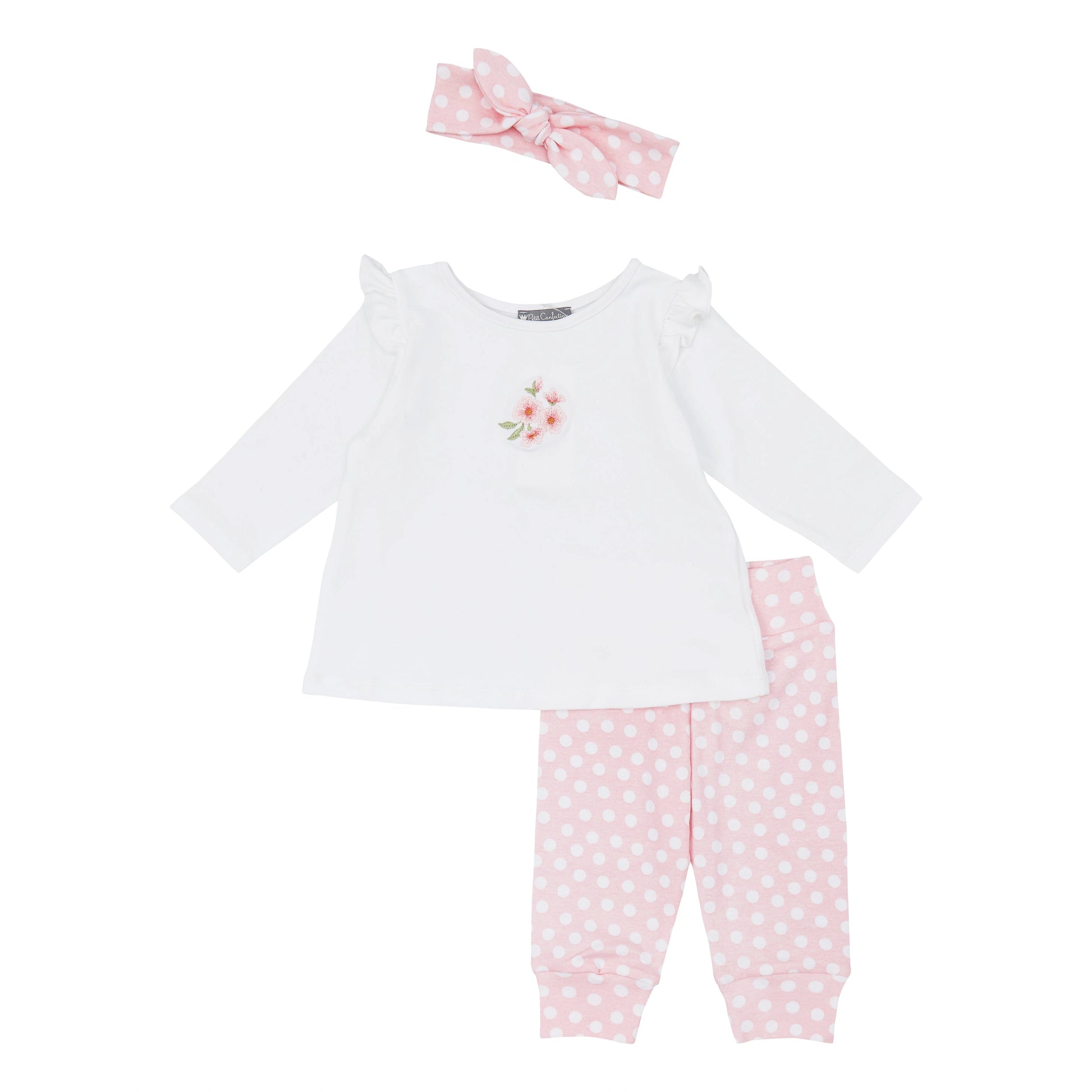 Petit Confection Style SP166 Your baby girl will look darling in our embroidered tunic set! Soft and comfy, with a touch of detail. Comes with coordinating leggings and headband for a complete look.