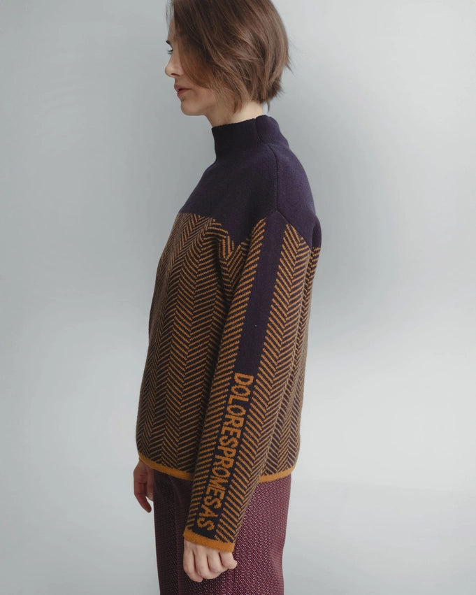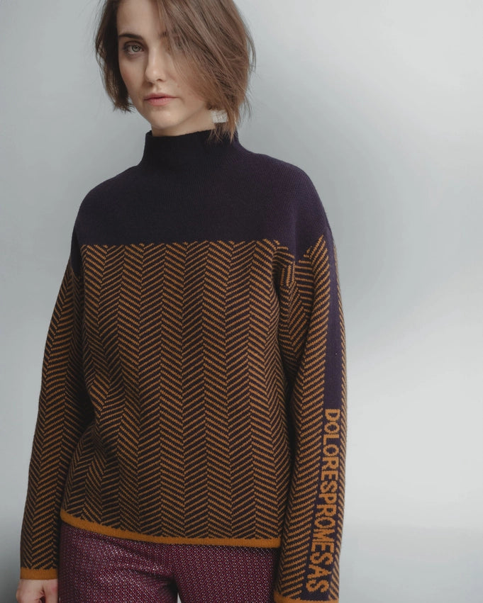 Introducing the Eva Turtleneck Sweater, your go-to for chilly weather. This printed sweater features a high neck and long sleeves for warmth and style. Complete with an elegant inscription on the sleeve, it's the perfect addition to any outfit. Made in Spain for top-quality craftsmanship.