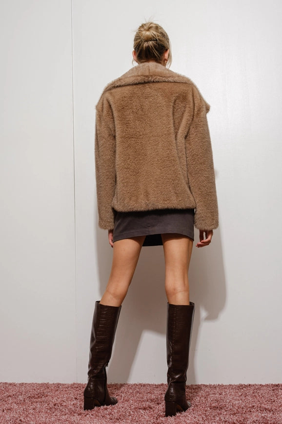 Indulge in the luxurious feel of our faux fur short coat. Crafted from high-quality, soft faux fur fabric, this coat will keep you warm and stylish all winter long. Featuring an oversized fit, snap button closure, and two pockets, it's both functional and fashionable. Perfect for the fall and winter seasons.