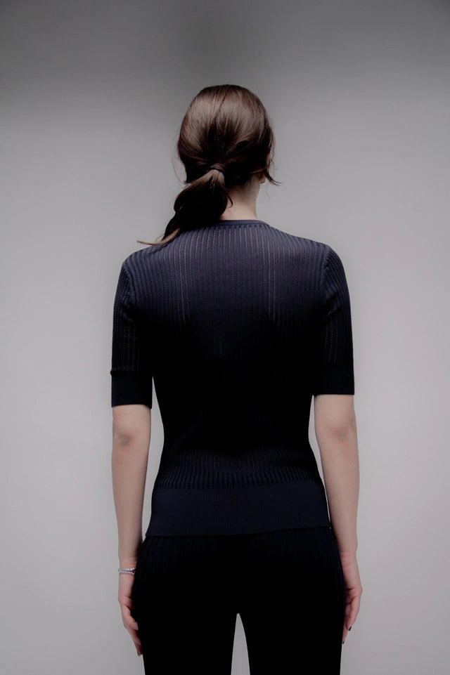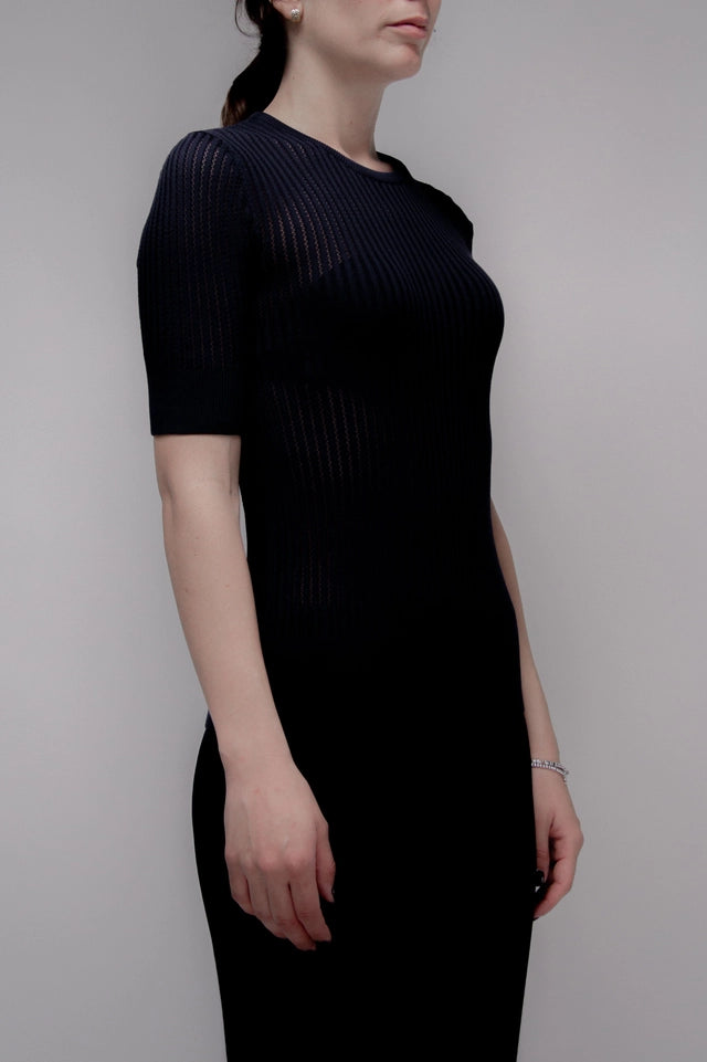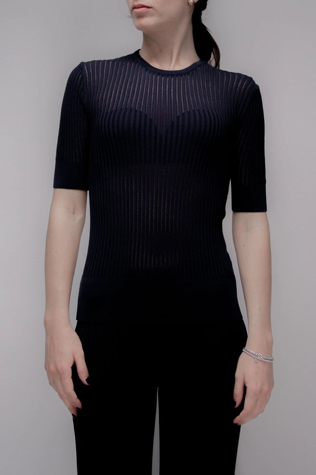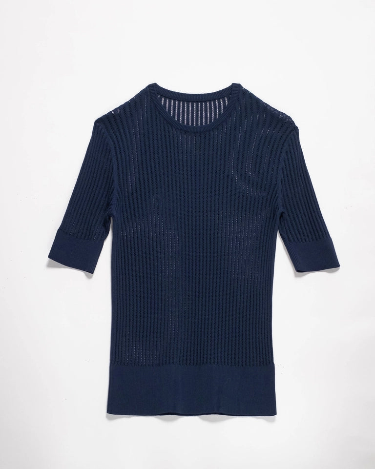 Fine Cotton T-Shirt with Micro Pointelle Marina Militare