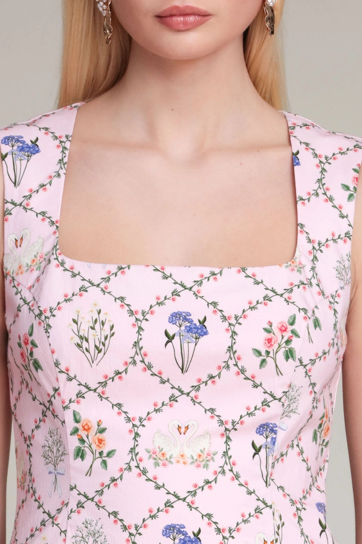 Embrace effortless elegance with this charming square neck mini dress, crafted from soft cotton with a flattering fit-and-flare silhouette. Its delicate floral pattern and timeless design evoke a refined, nostalgic aesthetic perfect for sun-soaked occasions. Transition seamlessly from casual daytime moments to more polished affairs—pair with minimalist flats for understated sophistication, or elevate with sleek heeled sandals and a structured accessory for refined evening gatherings and special celebrations.