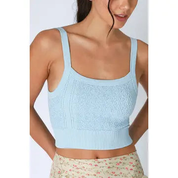 This seamless crop top combines comfort and style with a floral lace textured design and a flattering scoop neckline. Crafted from a blend of 92% nylon and 8% spandex, it offers excellent stretch and durability. Made in the USA, this one-size piece provides a sleek, ribbed fit that enhances your silhouette while maintaining breathability and flexibility. Ideal for layering or wearing alone, it delivers both elegance and everyday practicality.