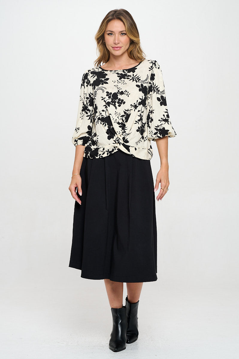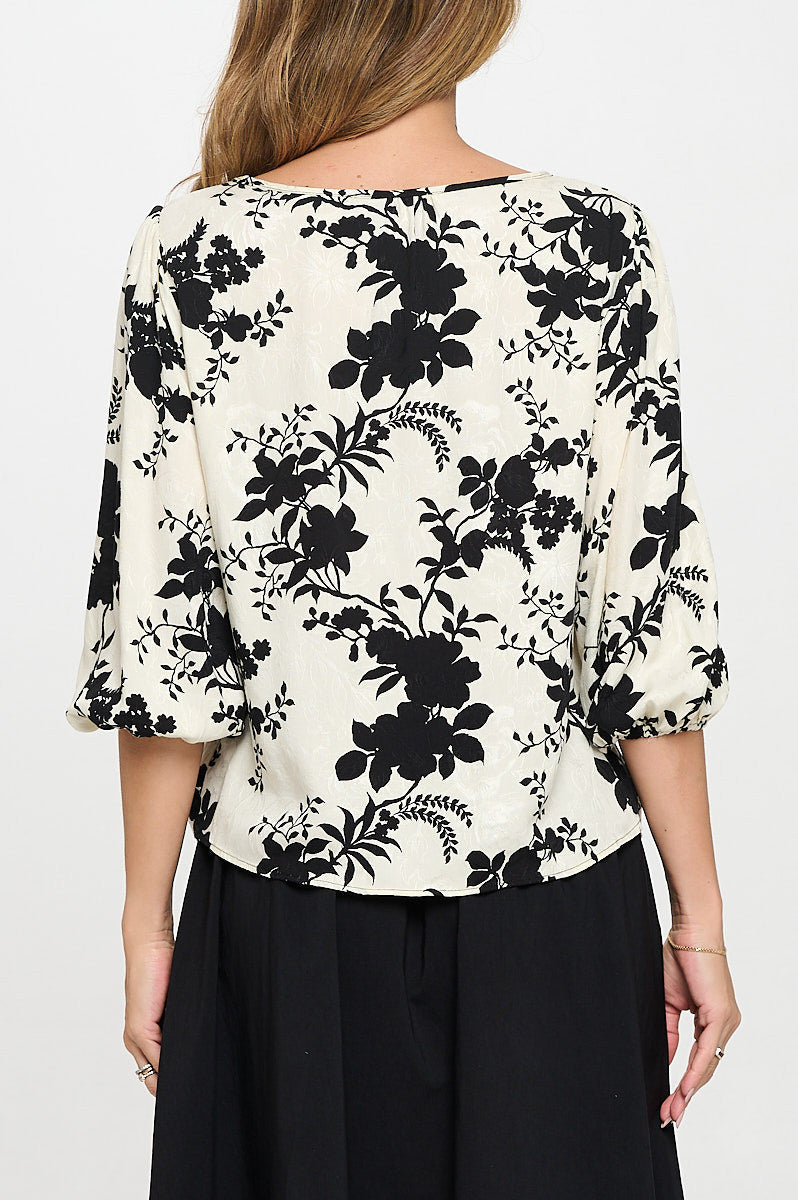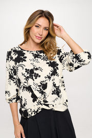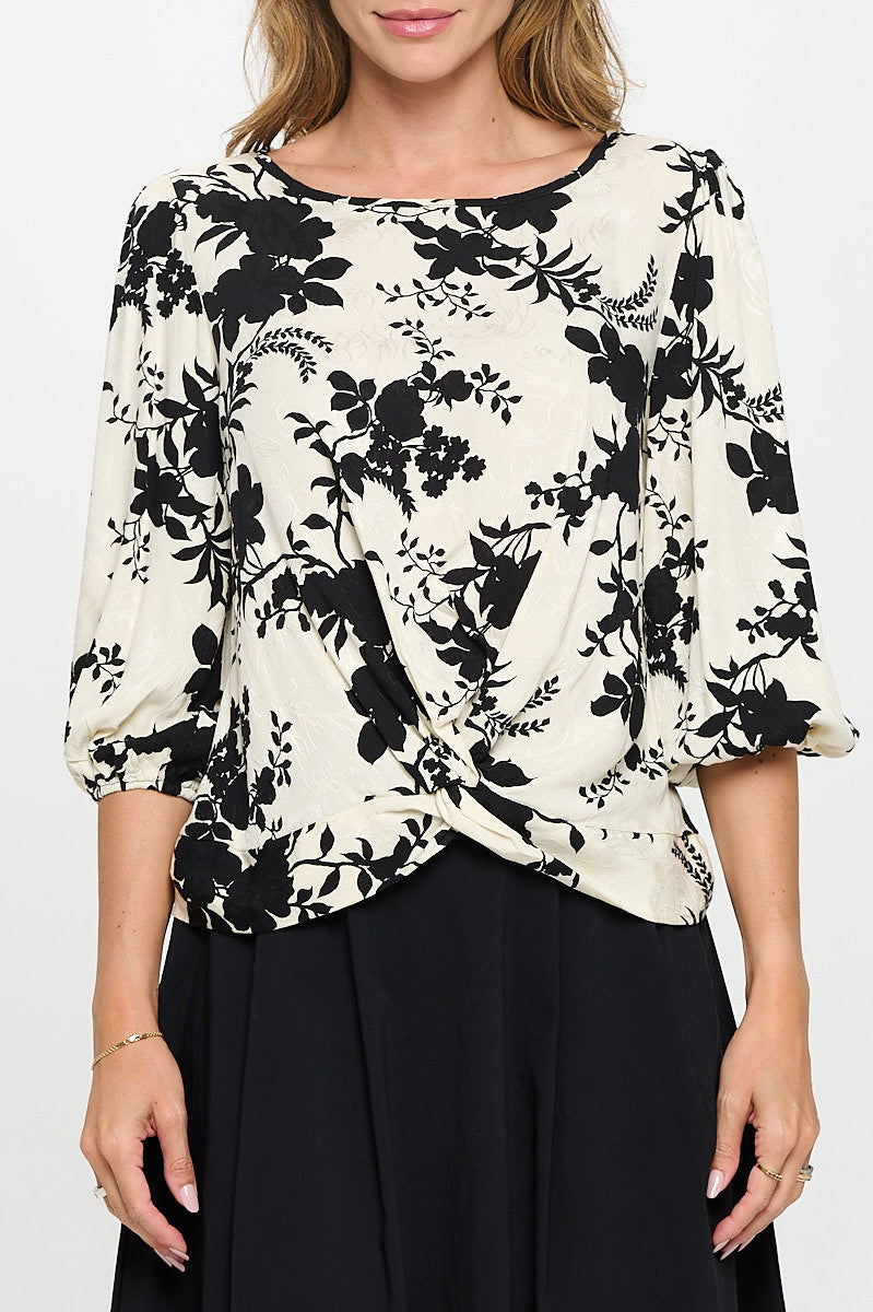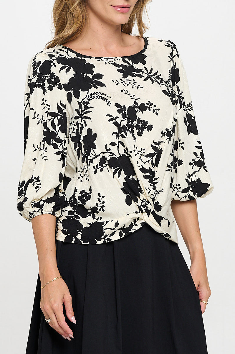 Floral Print 3/4 Sleeve Top with Front Twist-New Arrival-Reneecollection-Small-IVORY-Urbanheer