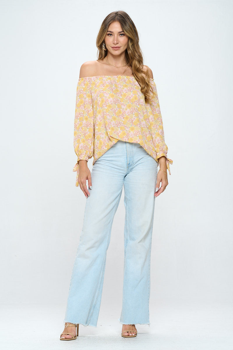Made in USA Floral Print Off the Shoulder Top. Fabric content: 100% Polyester.