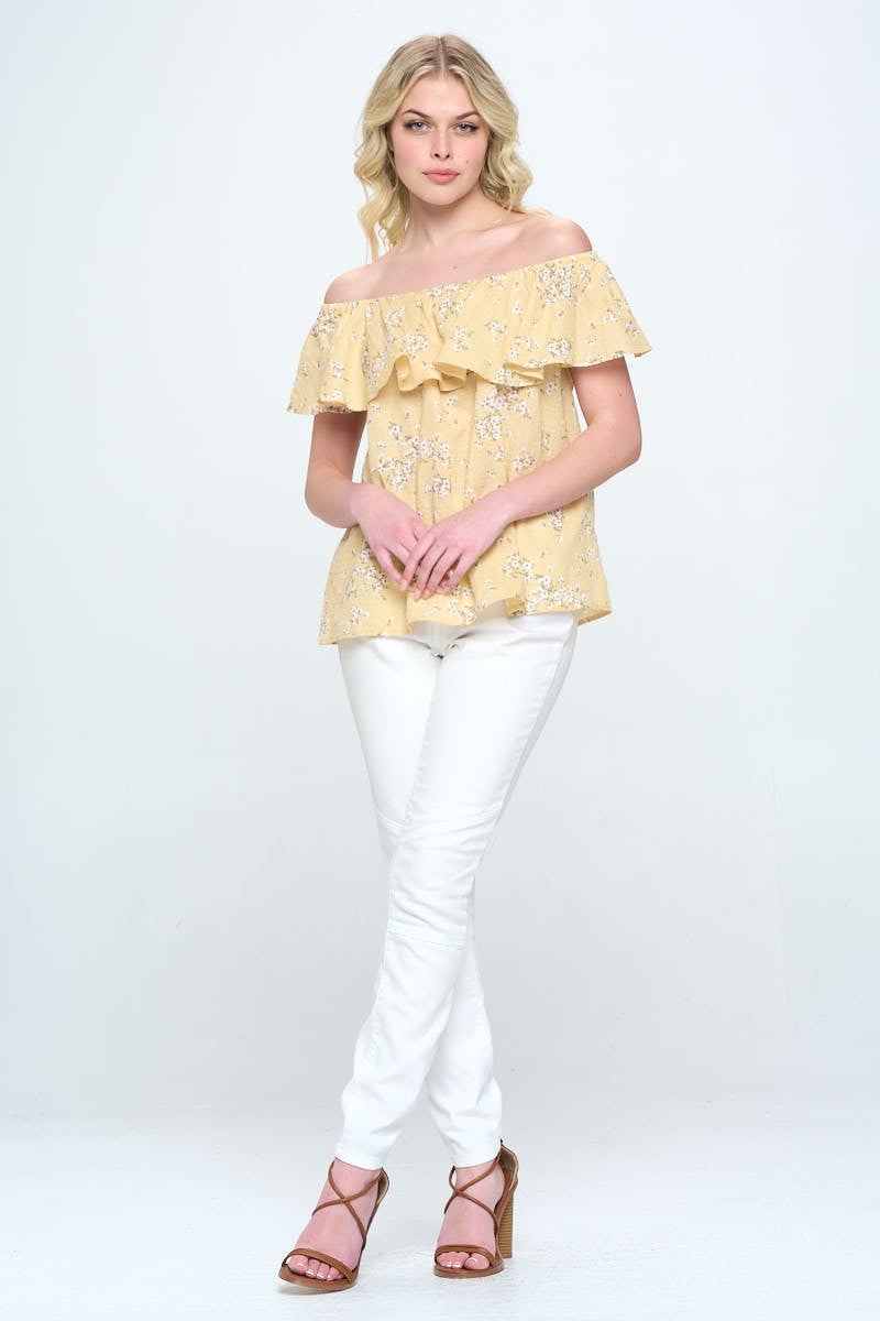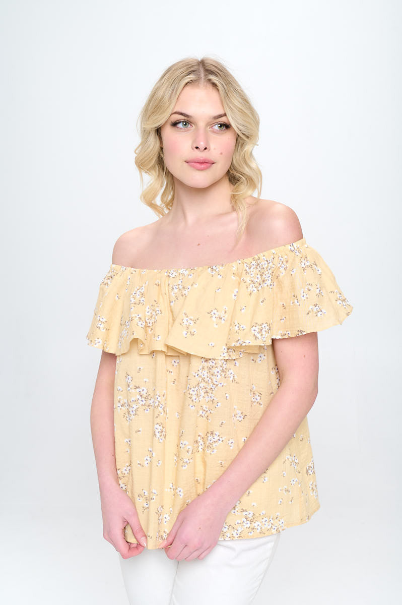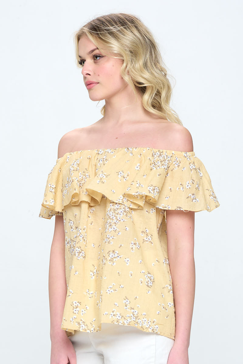 Floral Print Ruffle Off the Shoulder Top-Tops-Reneecollection-Urbanheer