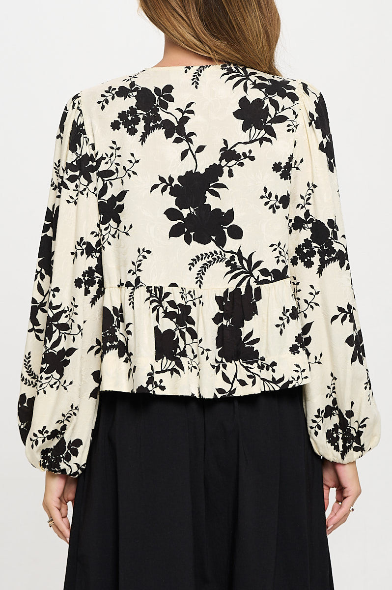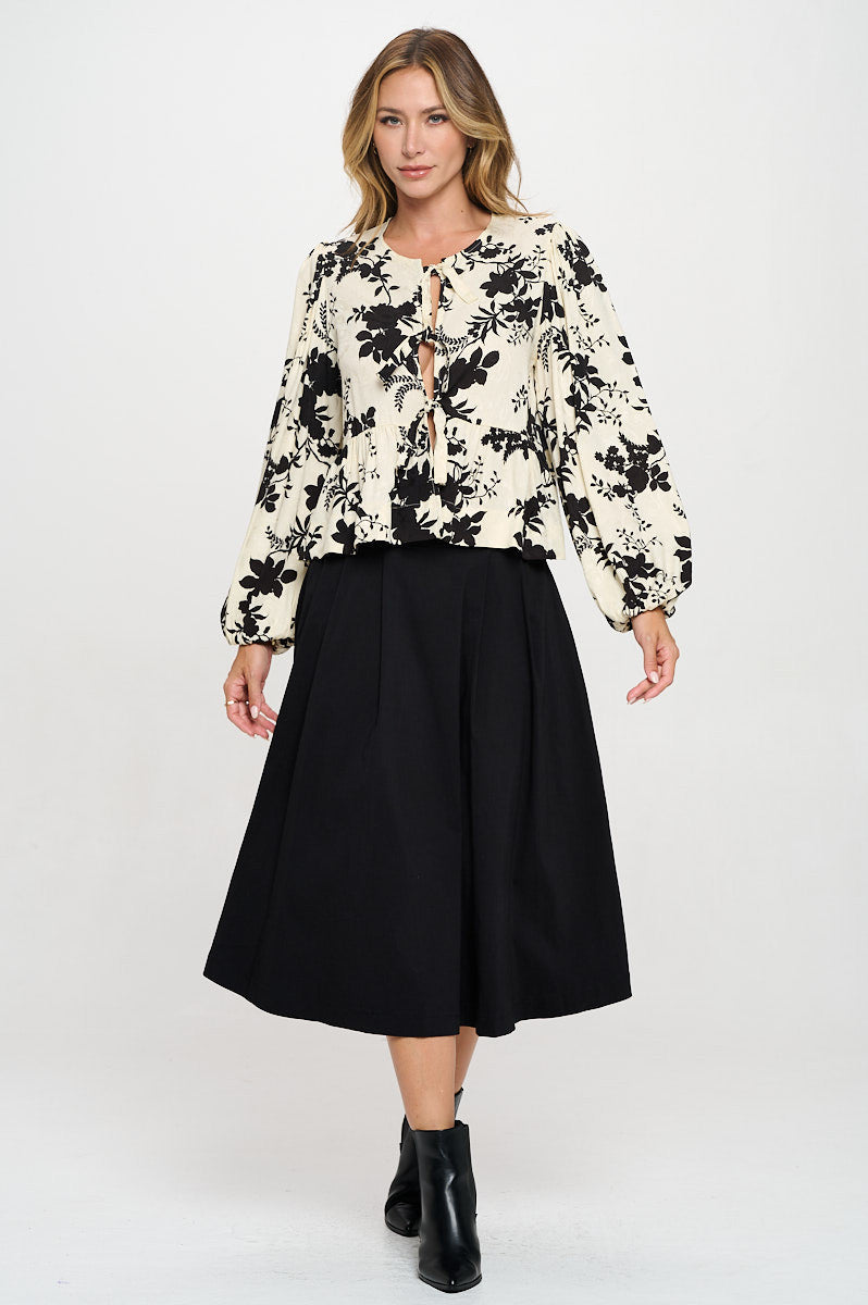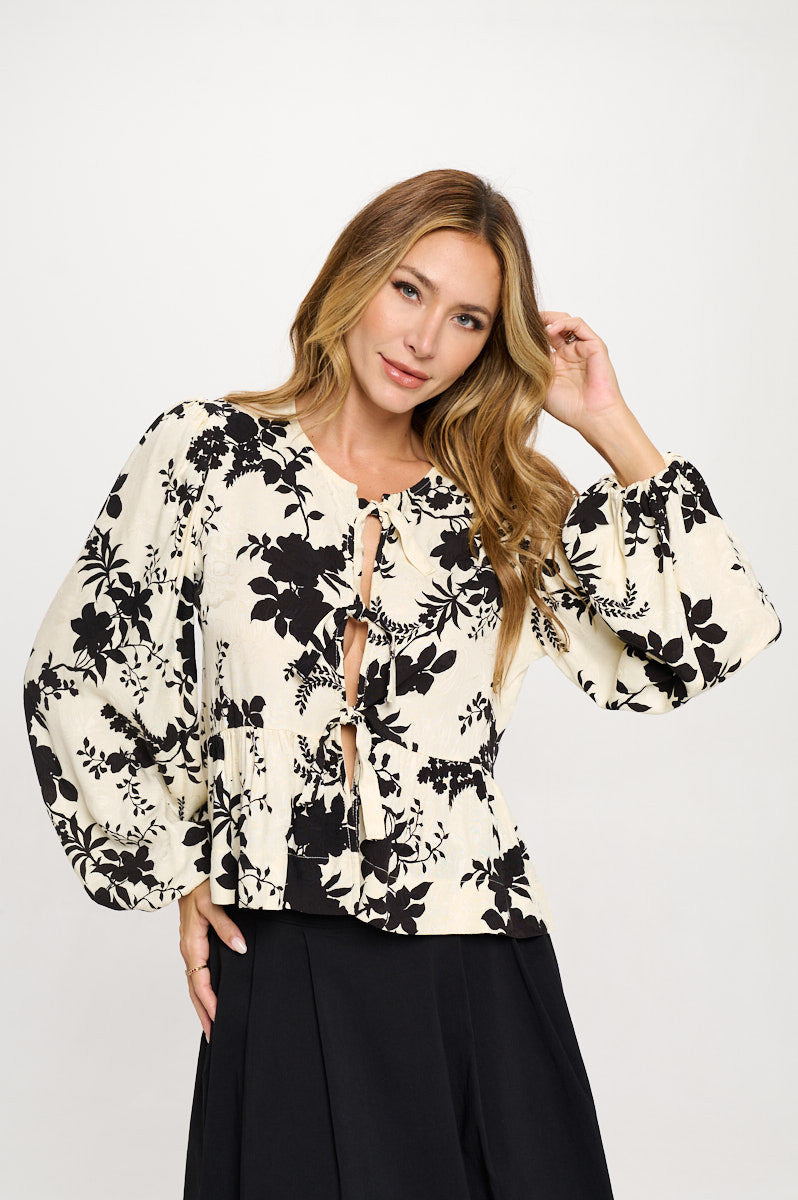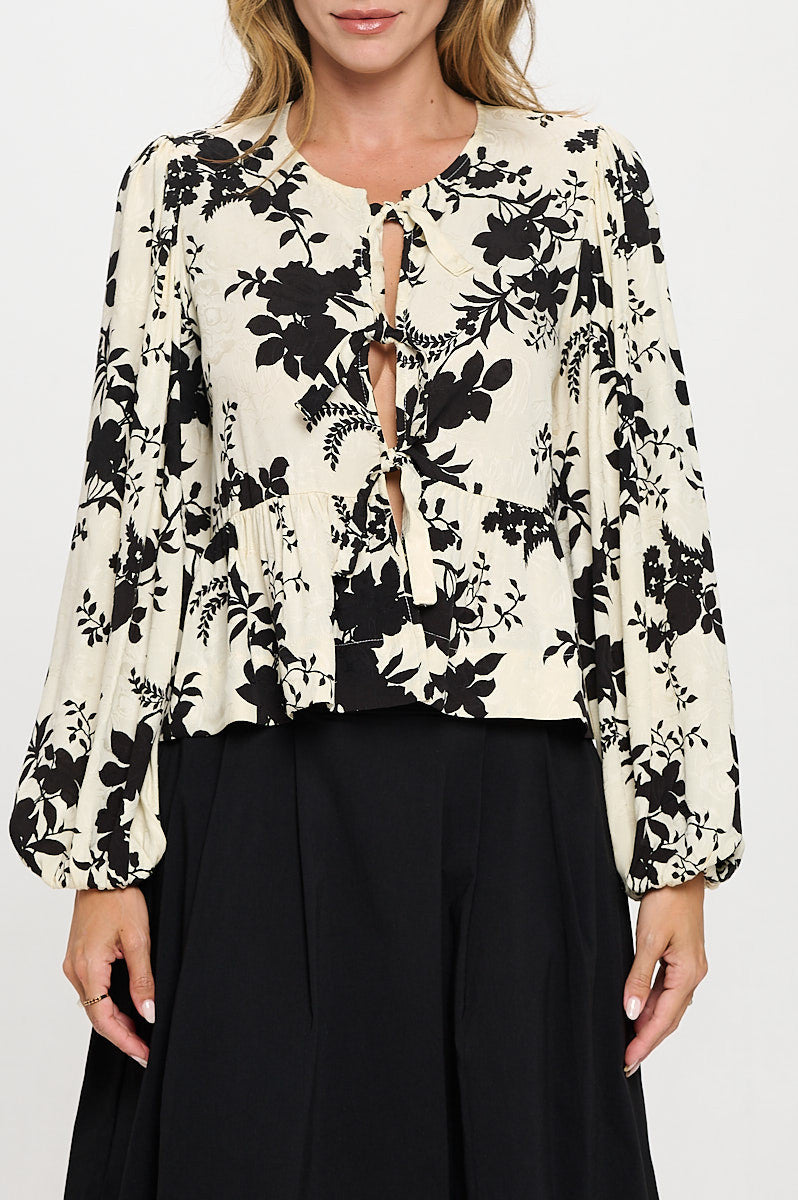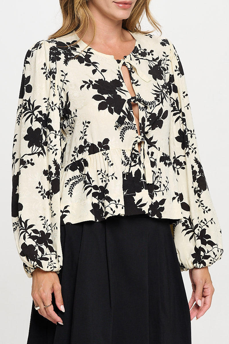 Floral Print Top with Front Tie Detail