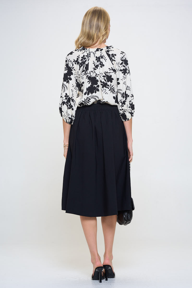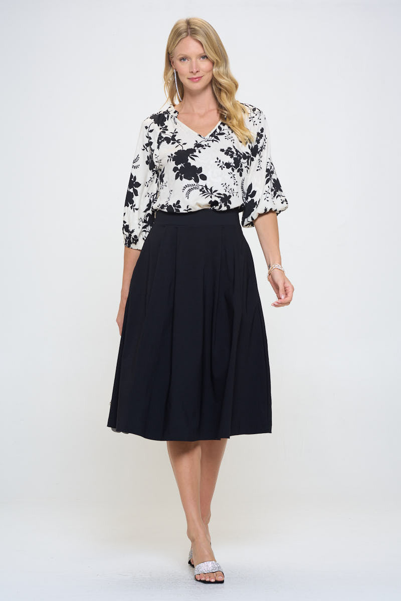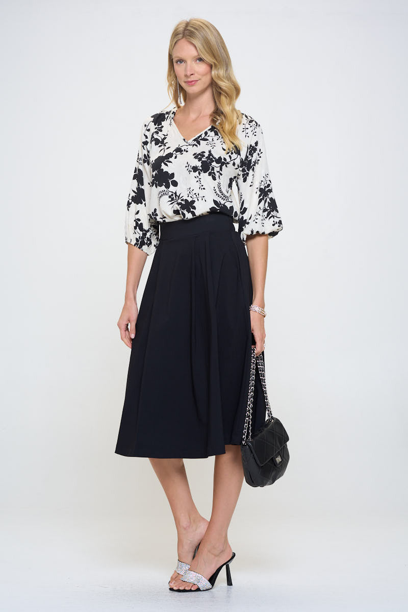 Made in USA Flower Print Notch Neck 3/4 Sleeve Top.