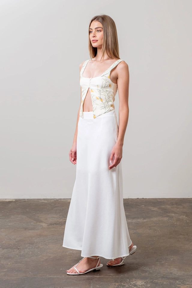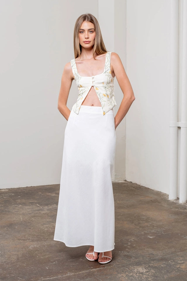 Expertly designed for the modern woman, this Front Button Detail Floral Print Vest Top features a flattering scoop neckline and sophisticated front button detail. The split hem adds a touch of elegance to the timeless floral pattern. With a lined and woven shell of 80% viscose and 20% linen, and a 100% polyester lining, this vest top is both comfortable and stylish.
