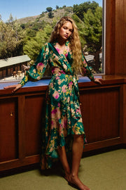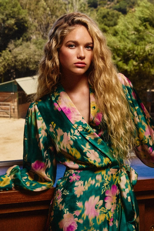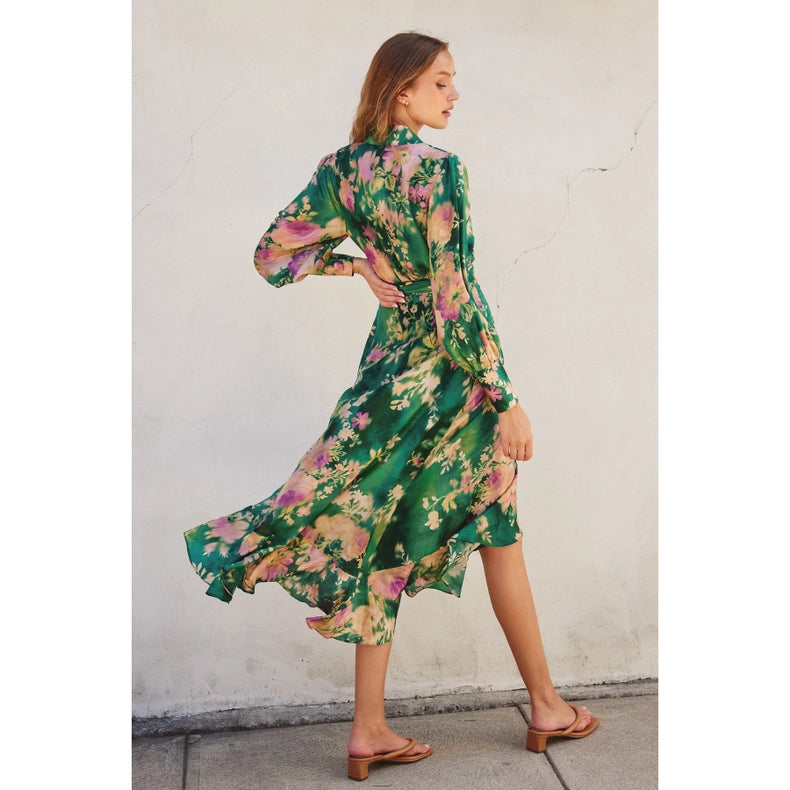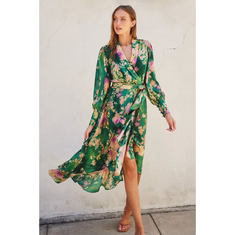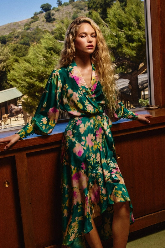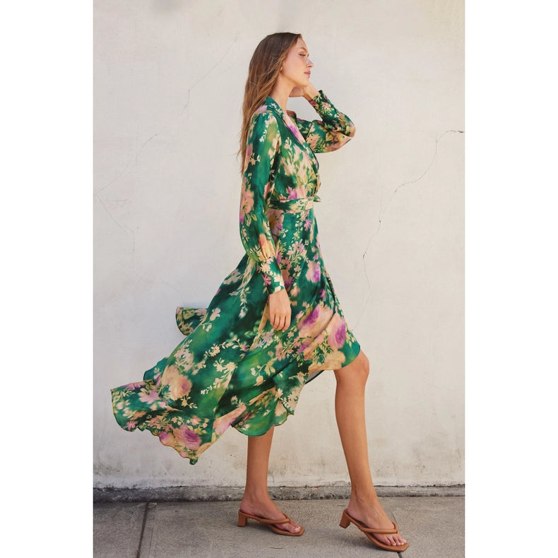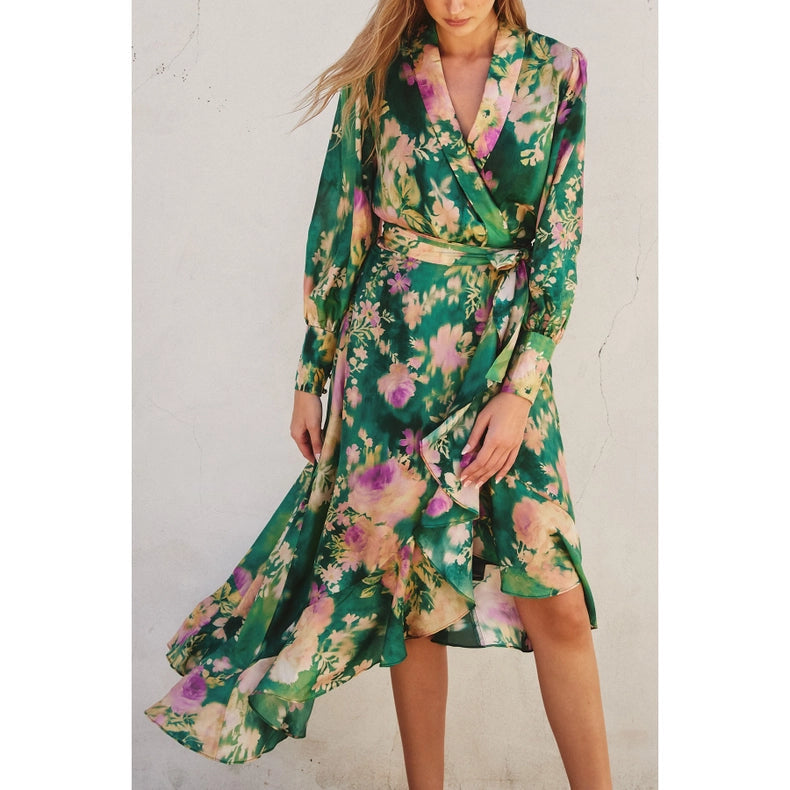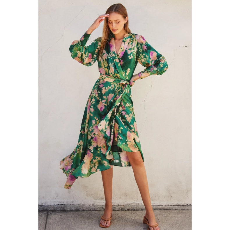 Crafted from luxurious satin, the Giverny Ruffled Midi Wrap Dress effortlessly combines elegance and comfort. Featuring a flattering wrap design and delicate ruffled hem, this dress is perfect for any occasion. The balloon sleeves and tie closures add a touch of sophistication, while the soft lining provides ultimate comfort. Available in multiple sizes, including Small, this dress is a must-have for your wardrobe.