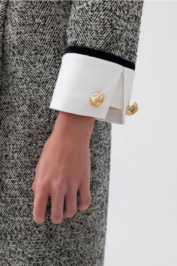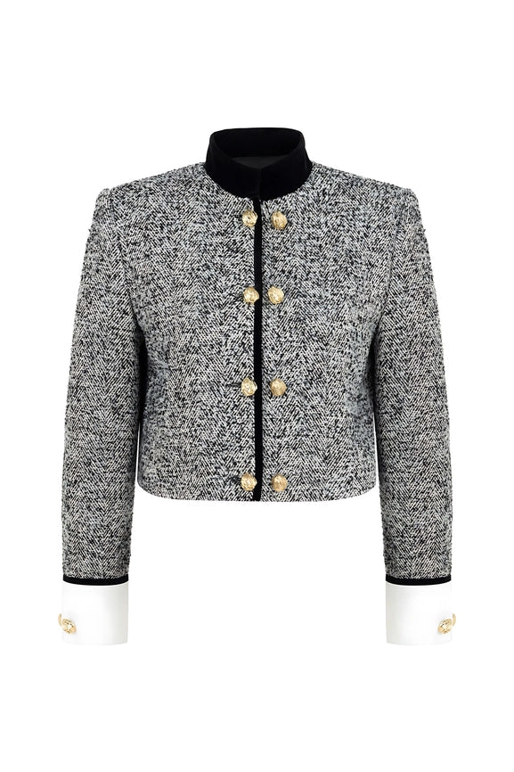 Navigate your day with comfort and style in our Gold Button Detailed Crop Jacket. The sleek cropped design seamlessly transitions from day to night, while the gold button closure and padded shoulder design add a touch of elegance. Crafted with high-quality materials, this jacket is perfect for any occasion. Made in Turkey.